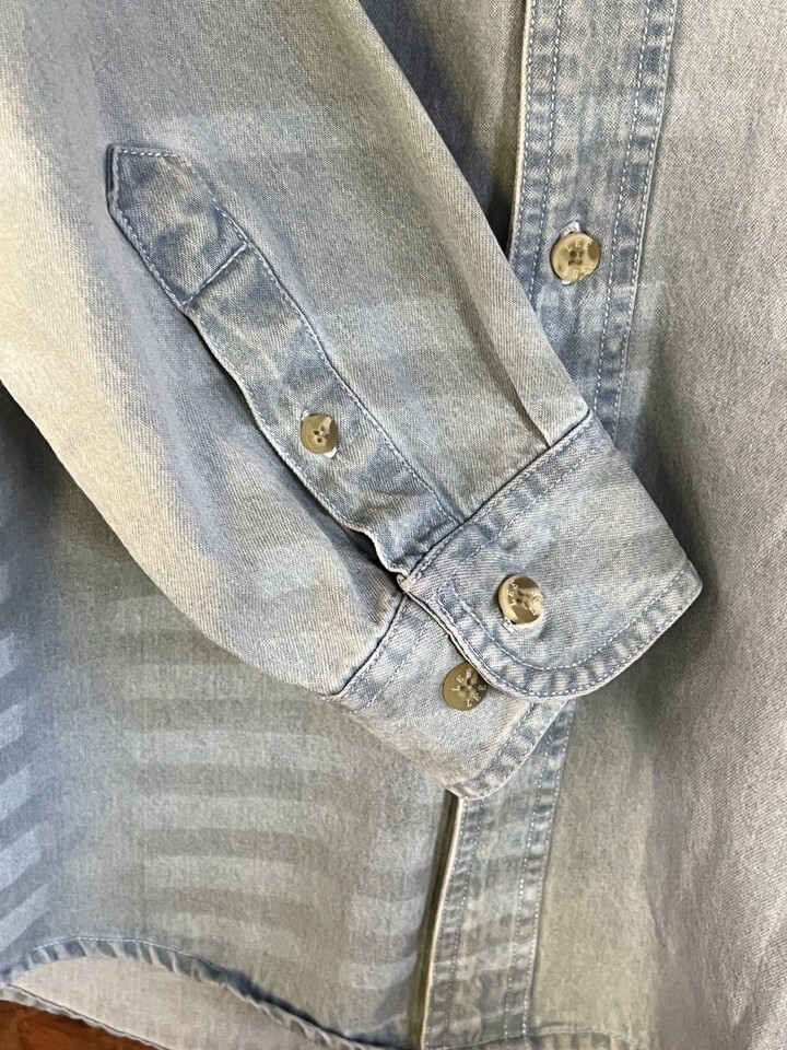 Nascar Dupont #24 Jeff Gordon Blue Long Sleeve Button Up Men's Denim Shirt M