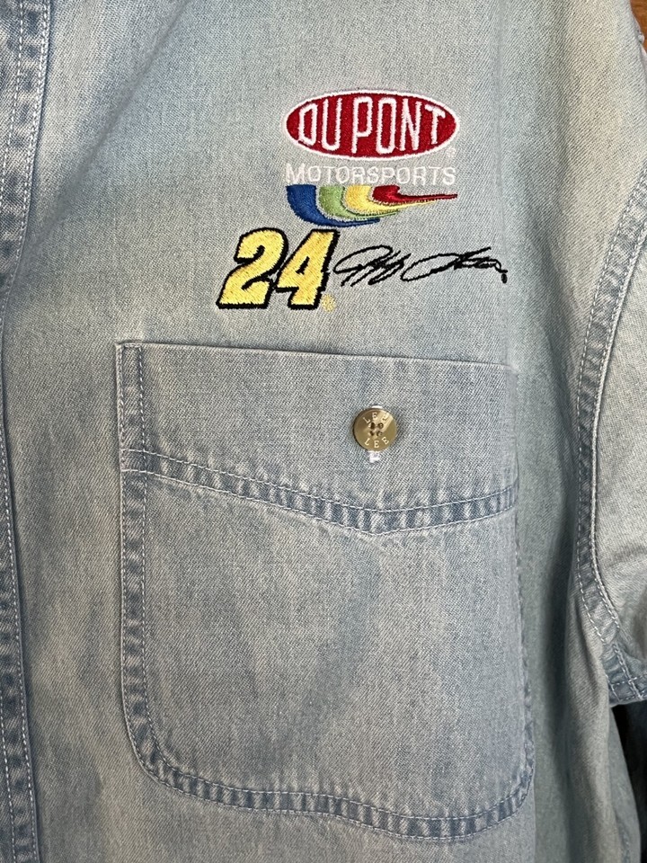 Nascar Dupont #24 Jeff Gordon Blue Long Sleeve Men's Denim Shirt Cotton M Racing