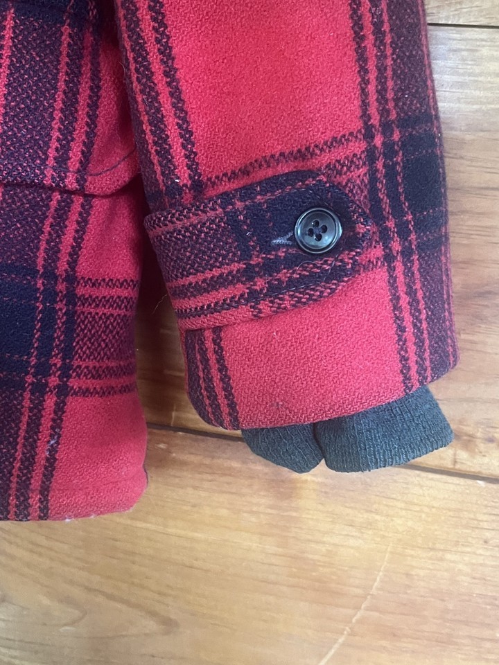 Vintage Johnson Woolen Mills Jacket Red Black Mackinaw Buffalo Plaid Men?s Size 42