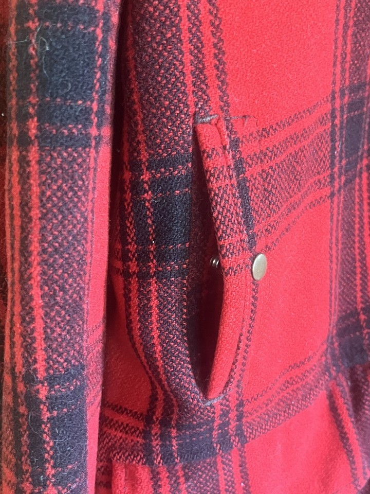 Vintage Johnson Woolen Mills Jacket Red Black Mackinaw Buffalo Plaid Men’s 42