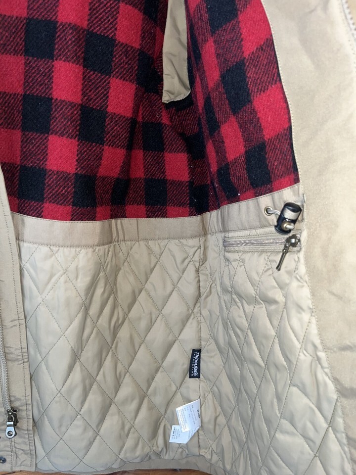 L.L. Bean Men's Flannel Wool Lined Barn Chore Coat Size XL-Reg Thinsulate Hooded