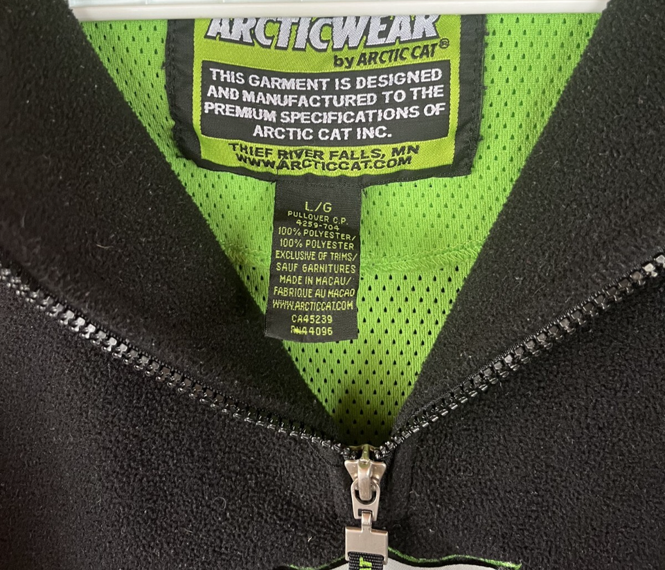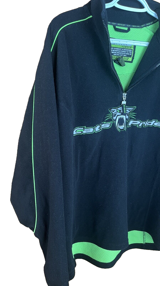 Vintage Arctic Cat Cats Pride Large Fleece Pullover Black/Green Snowmobile USA