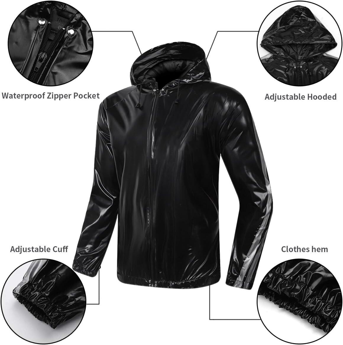 Windproof Waterproof Sauna Suit with Full-Zip for Men & Women Fitness – Black