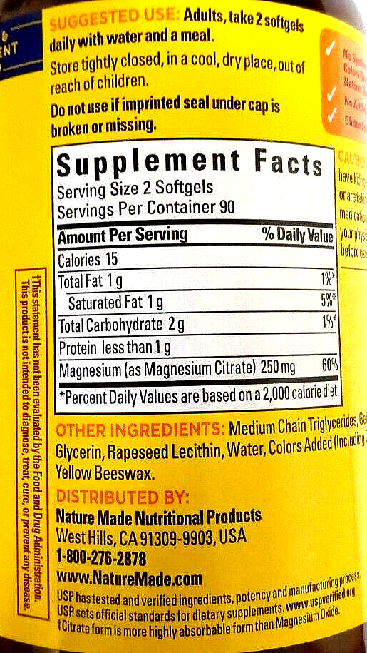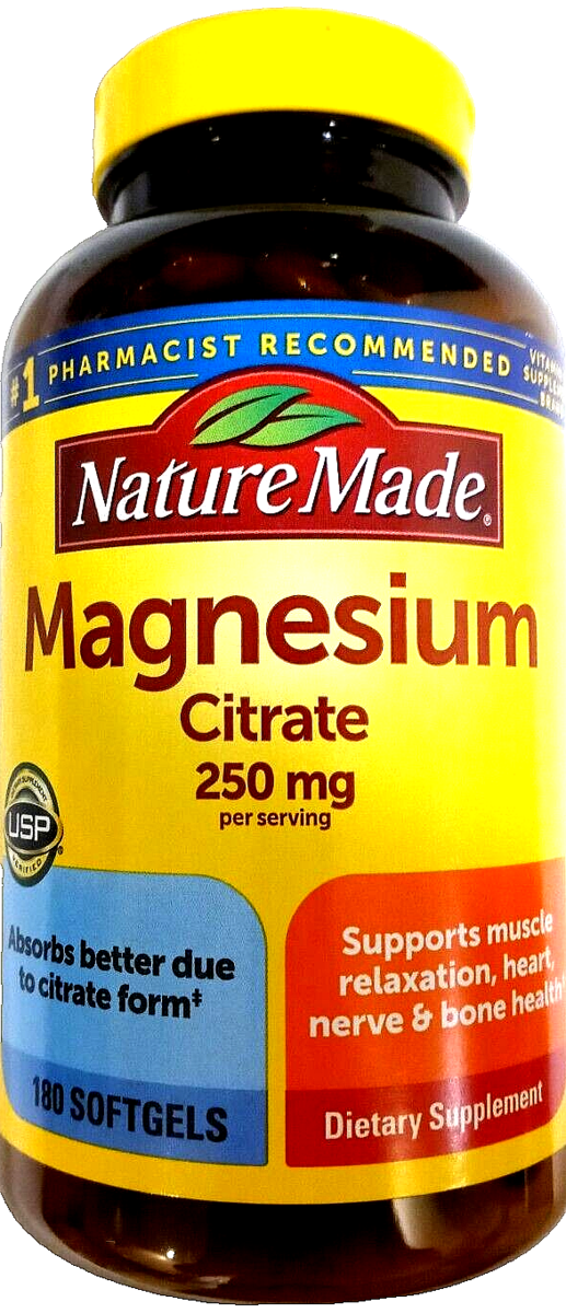 Nature Made Magnesium Citrate 250 mg 180 Softgels EXP 01/2027