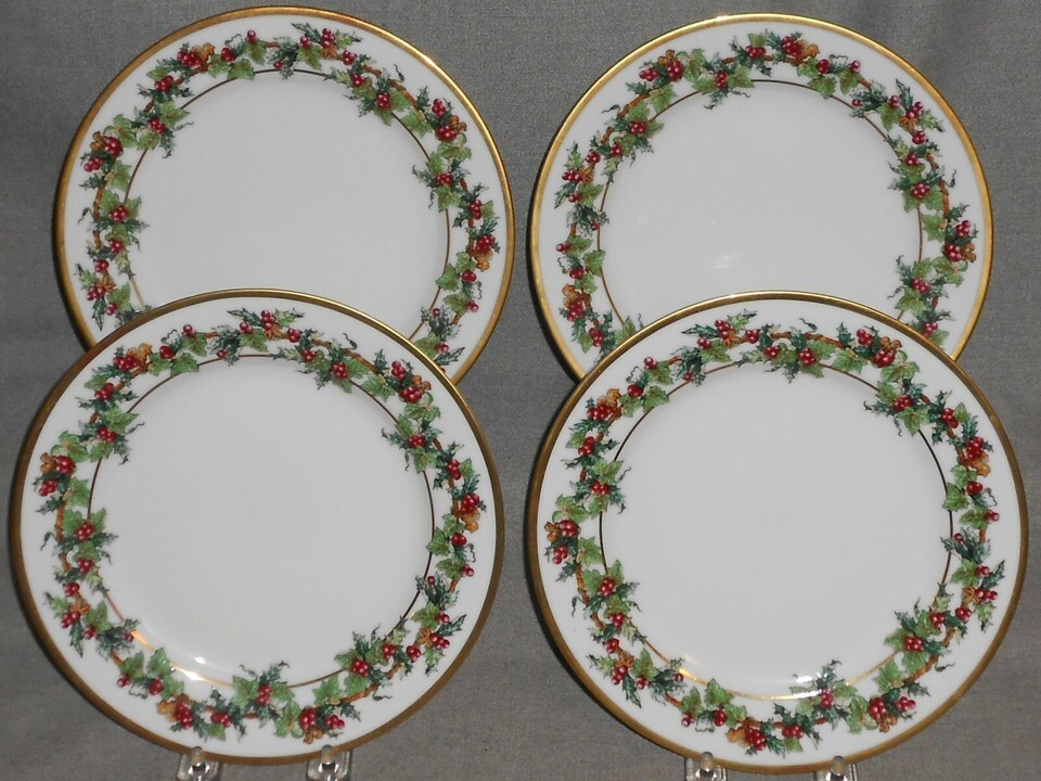 1992 Set (4) Royal Gallery THE HOLLY AND THE IVY PATTERN Dinner Plates CHRISTMAS