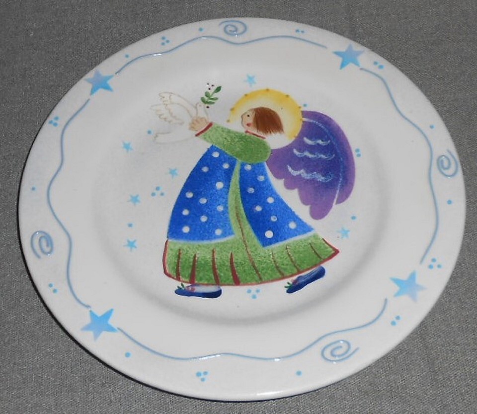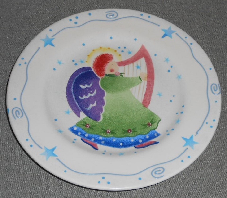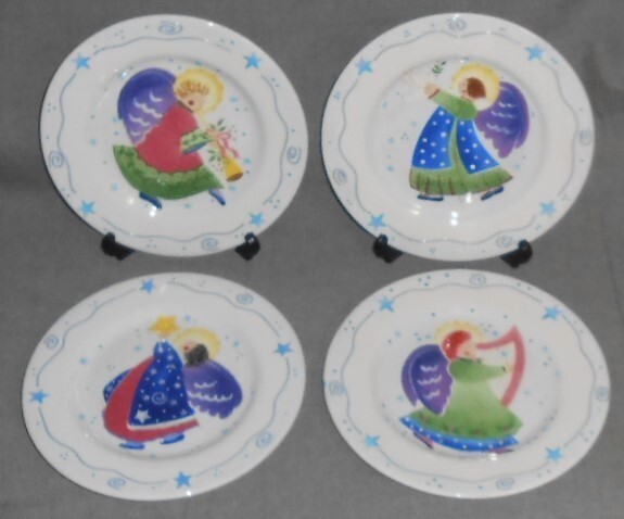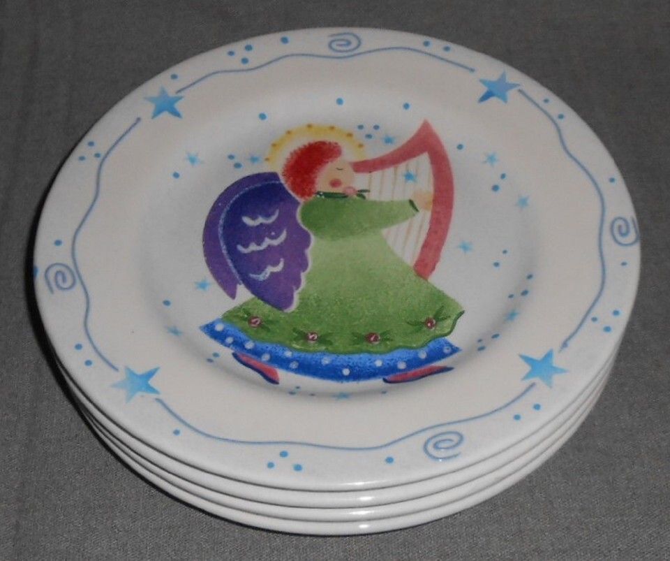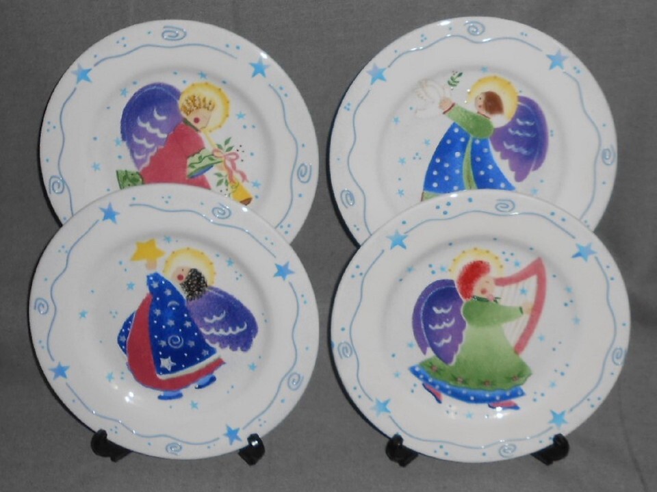 Set (4) Block ANGELICA PATTERN Salad Plates DEB MORES Holiday - Christmas