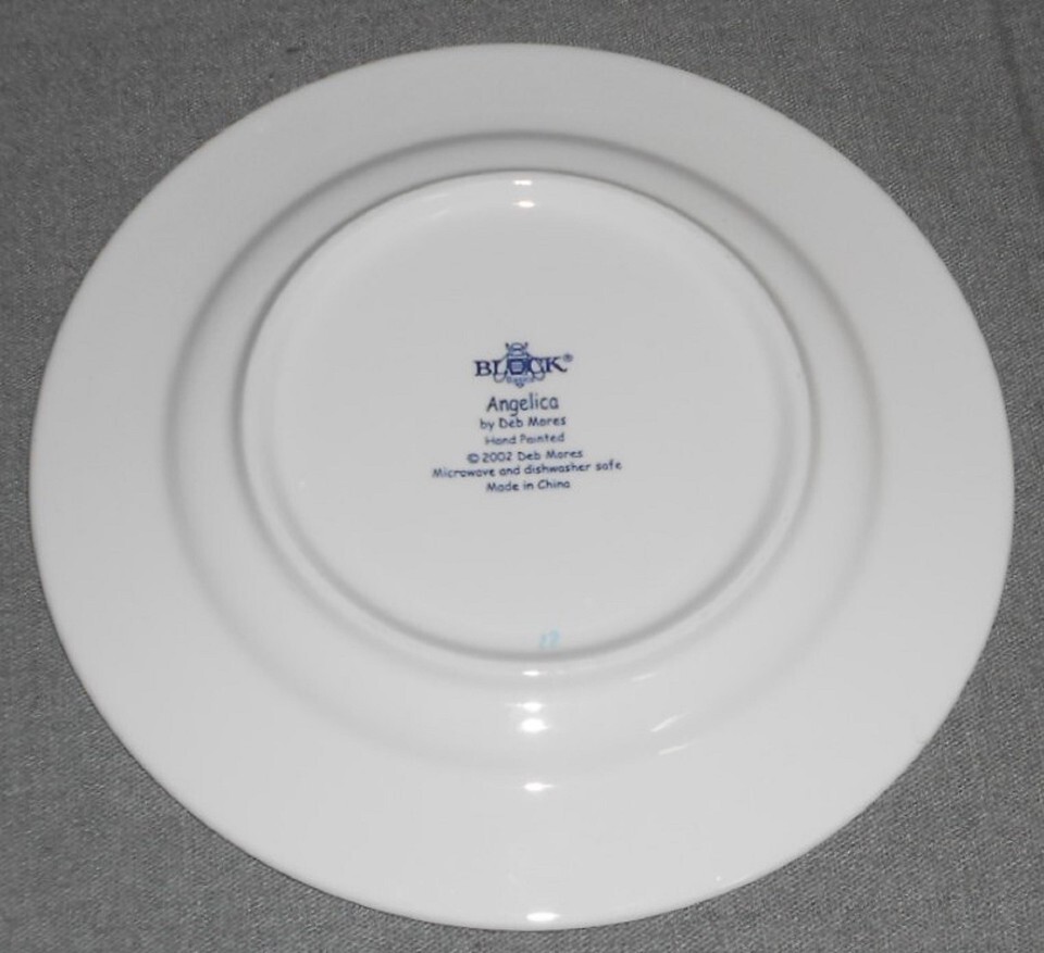 This is a set of (4) 8 3/8" Salad Plates from Deb Mores and Block in the Angelica Pattern. All four are in good pre-owned condition with one exception which is a beginning chip - mprobably banged against something once - and it never chipped so it is a partial outline of a chip and it is on the back so has no effect on use or display of plate.