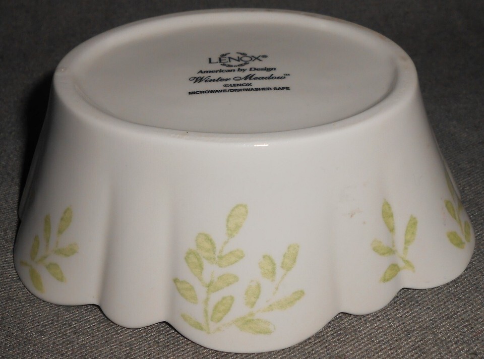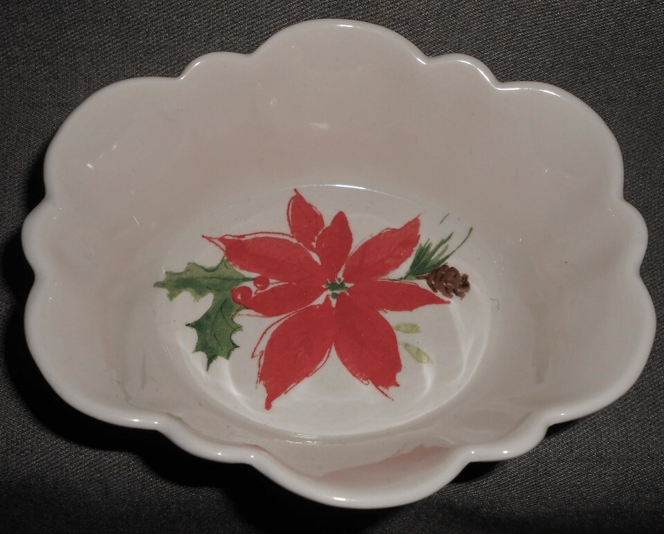 This is the Candy or Nut Dish with the Poinsettia that measure approx 5" from Lenox in the Holiday - Christmas Themed Winter Meadow Pattern. It is in good pre-owned condition with no chips or cracks.