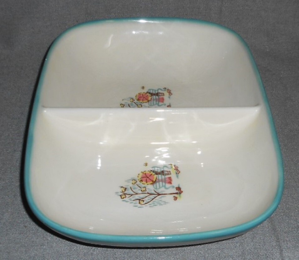 1950s Brock Pottery FOREVER YOURS PATTERN Divided Vegetable/Serving Bowl