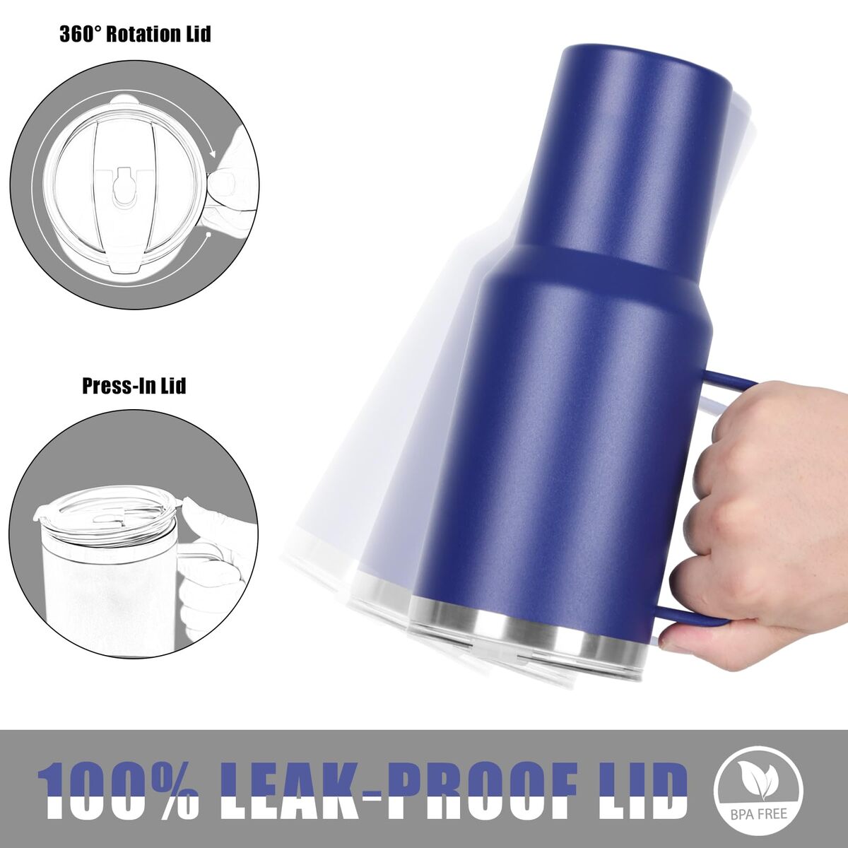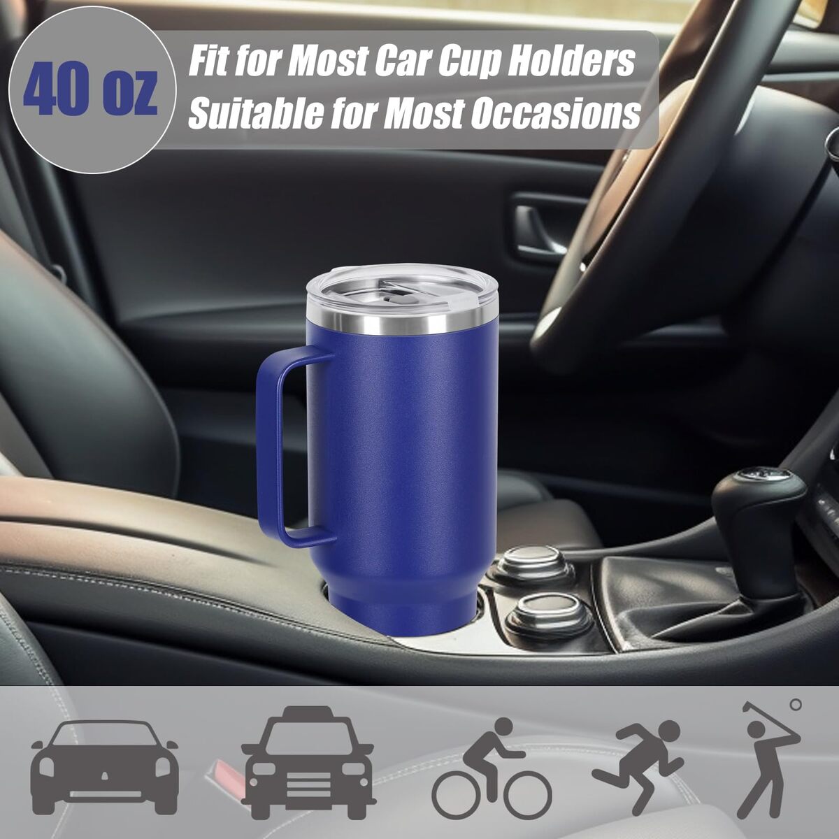 ?Leak-Proof Clear 2-in-1 Lid?This 40oz handled tumbler features a practical, clear, and leak-proof 2-in-1 lid ? your ultimate hydration companion. It includes a built-in sip-opening for quick drinks on the go, a stainless steel straw with a soft silicone tip, and an extra plastic straw. All are designed to deliver a seamless and enjoyable drinking experience, whether you're active or relaxing.,?High-Quality Material?Crafted from durable 18/8 stainless steel, our 40oz tumbler is finished with a high-quality powder-coated exterior and a BPA-free lid to ensure your drinks stay safe and healthy. Its compact design fits most car cup holders, making it easy to carry your beverages wherever you go ? ideal for home, travel, office, or parties.,?Cold Heat Retention?Equipped with double-wall vacuum insulation, this 40oz handled tumbler maintains your beverage at the ideal temperature all day long. It also stays sweat-free when filled with cold drinks, keeping your hands dry and your table clean.,?Ideal for Laser Engraving?Perfect for gifting! Personalize this 40oz tumbler with DIY designs to create a memorable surprise for friends, family, colleagues, or loved ones. It makes a thoughtful gift for birthdays, Christmas, Mother?s Day, Father?s Day, graduations, and other special occasions.,?What?s Included?You will receive: 4 40oz Tumbler 4 Steel Straw Straw Brush 8 Silicone Straw Tips 4 Plastic Straw 4 Silicone Boot