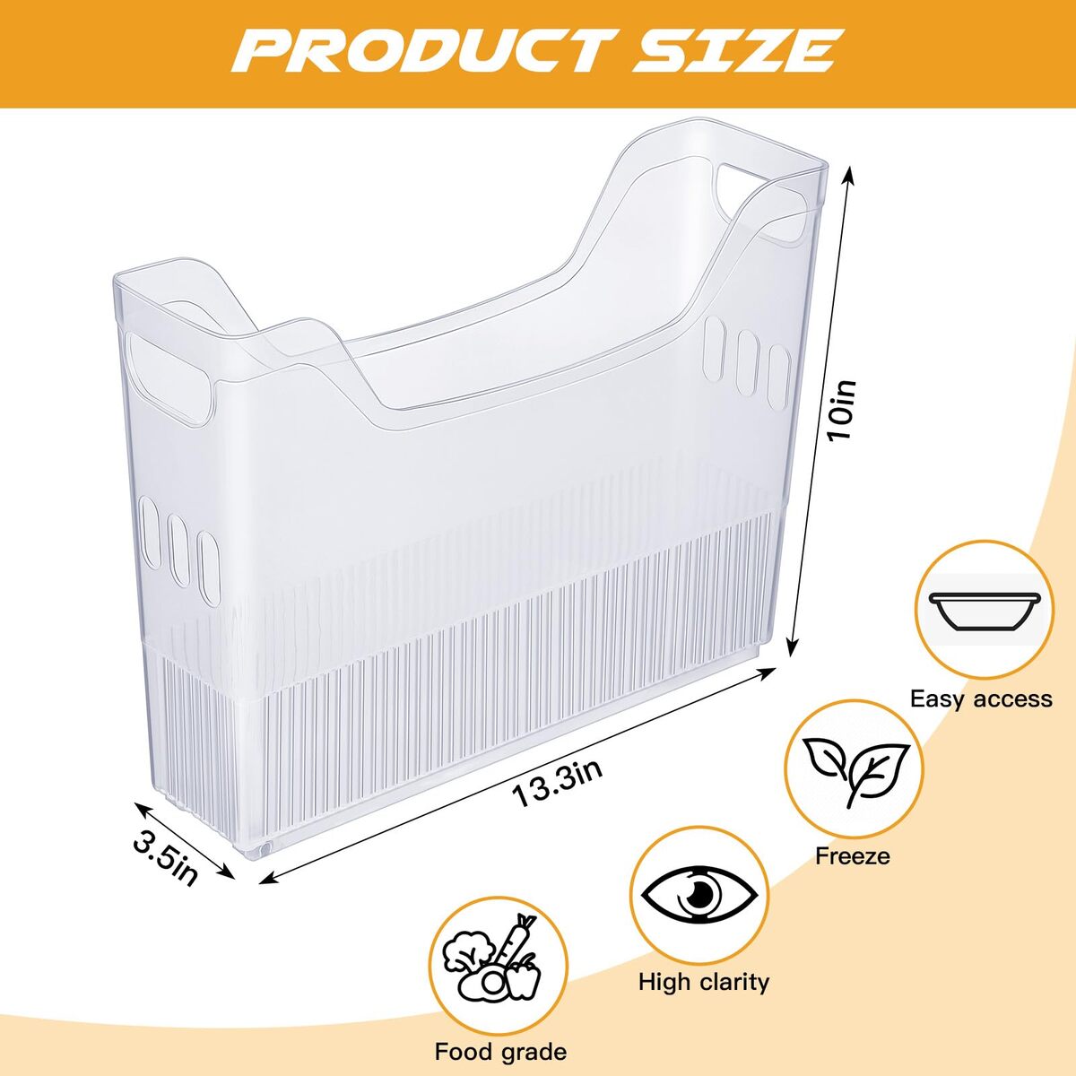 Package includes: you will receive 4 pieces of food storage containers with rollers, sufficient quantity and suitable size to meet your daily use and replacement,Dimensional details: measures about 10 x 13.3 x 3.5 inches/ 25.5 x 33.8 x 9 cm and features sturdy handles for carrying from refrigerator to counter,Rugged and durable material: made of thickened PP material, these rolling storage bins are durable and unbreakable, the open design allows for easy access to stored items and quick cleanup, while the carry handle allows for easy and comfortable transportation,Simplify space design: these food storage containers maximize your space. Sleek and deep, these modularly designed storage bins will help you maximize your space. Watch as home organization becomes your favorite task,Applications: these tall and narrow storage bins are versatile and can be placed in the bedroom, living room, study room, office, bathroom, playroom or any other place, suitable for storing your crafts, toys, cosmetics, pencils, snacks, etc., giving you a more tidy home