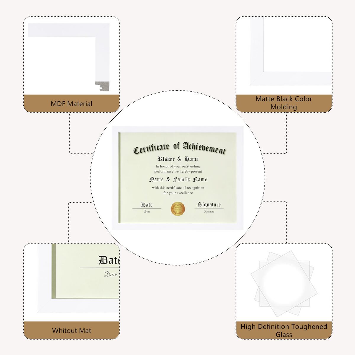 aSizea ELSKER HOME 8.5x11 Picture Frame-Certificate Document Frame,Suitable for children's artwork, pictures or certificates up to 8.5x11 inch, the actual opening size is 8x10.6 inch. aFunctionaIt can be used as a kids art frame as well as a certificate frame, and there are a variety of colors to choose from. aDesignaThis 8.5x11 Picture Frame-Certificate Document Frame has a unique design, which can be placed on the table as well as hanging on the wall, and can be placed at home as well as in the office. The usage is very wide. aQualitya Made of solid raw materials and HD tempered glass, excellent quality, does not hurt children. A set of 6 packs, easy to collect. This kids art frame is an absolute must-have for gift-giving, suitable for birthdays, Christmas and other festivals. aEasy to UseaThe backboard is fixed with knobs, easy to open and close, then you can place your child's artworks or certificates to share your child's creations, and preserve your wonderful memories.