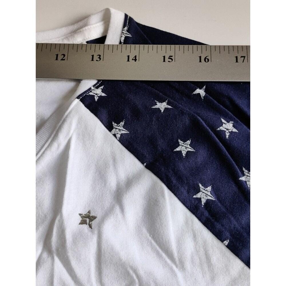 St John's Bay Women's V-Neck T-Shirt Short Sleeve Navy/White Start Print Size 2XL