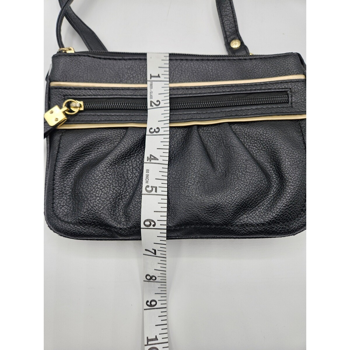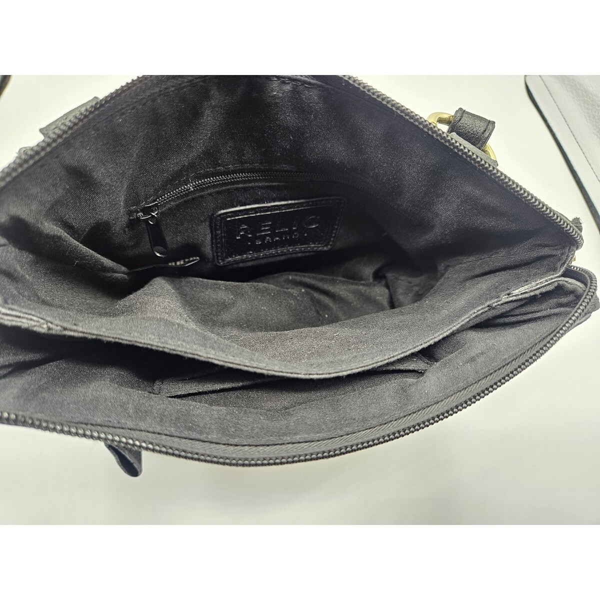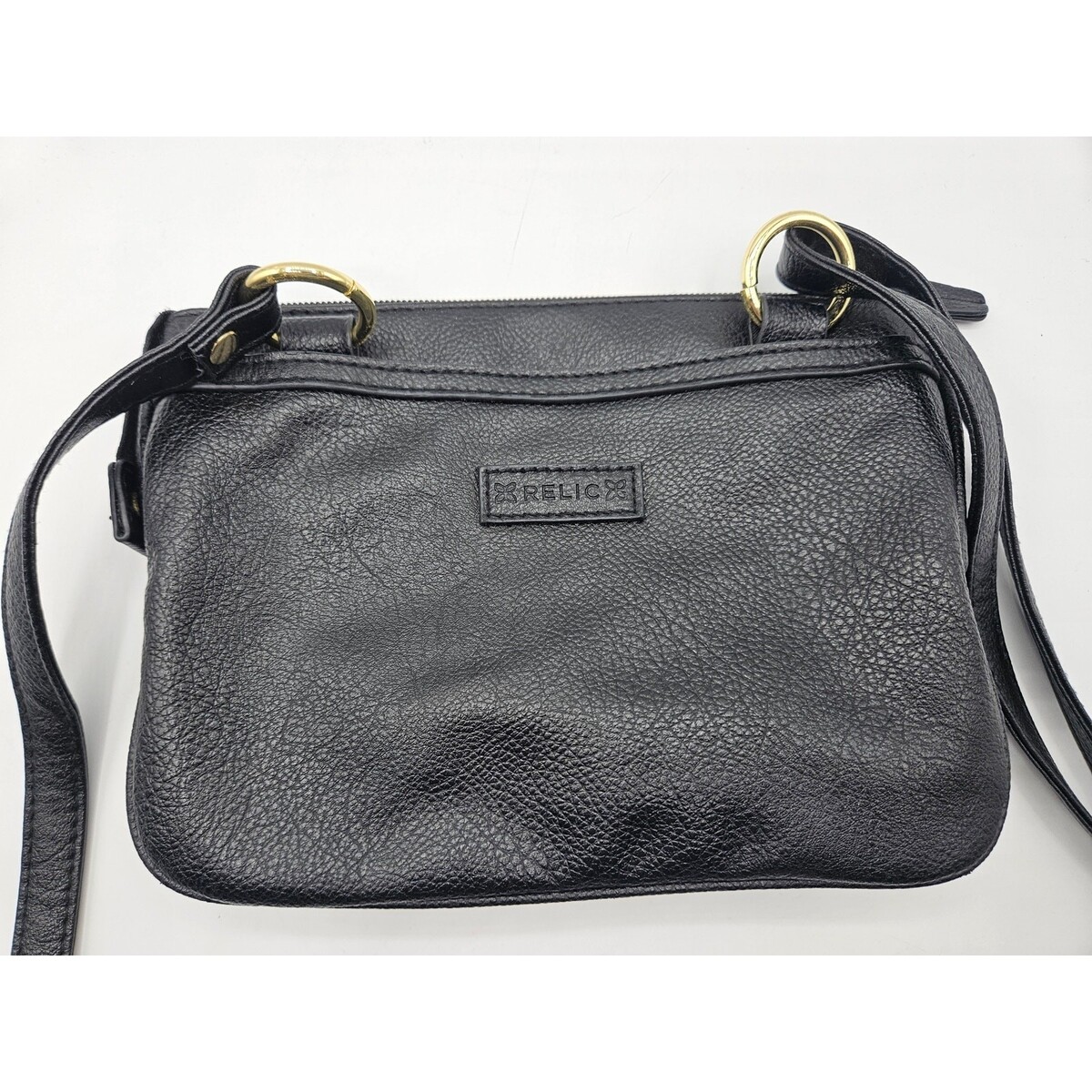 Relic Women's Crossbody Bag Black with Gold Piping Zippers Pockets Adj Strap