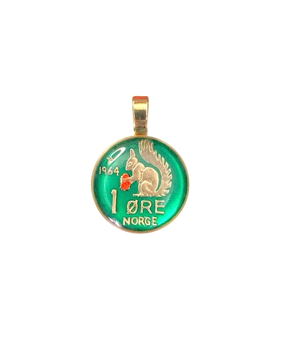Norwegian Squirrel Pendant, Enamelled Charm, Norwegian Coin jewellery, Animal Jewellery, Jewelry from Norway, Gift for her, Coin Pendant.