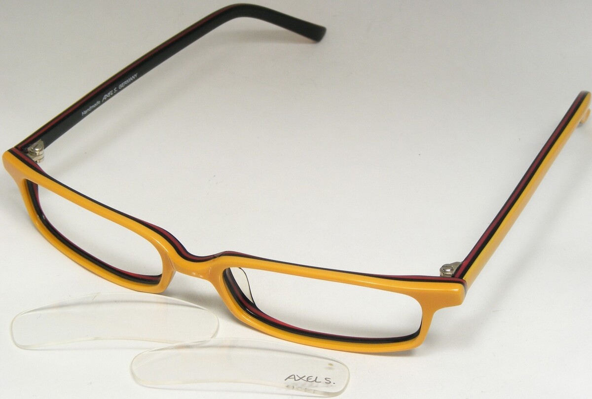 Notes : nouvelles lunettes mais les deux objectifs de demonstration sont tombes et donc le coût est reduit. Veuillez regarder les photos. Axel S. fait partie des pionniers de la lunetterie et est l'un des designers les plus celebres d'Allemagne depuis plus de 30 ans. Sa collection s'adresse principalement aux clients orientes vers la mode, destines aux dames et messieurs soucieux de la mode. Ses creations sont la preuve vivante que les lunettes ne doivent pas necessairement etre une prescription medicale, mais une maniere individuelle et progressive d'exprimer sa personnalite. Les caracteristiques de conception et de qualite sont leur acceptabilite internationale. Les retours sont toujours GRATUITS pour quelque raison que ce soit. Si vous ne l'aimez pas, cliquez simplement sur "Article do