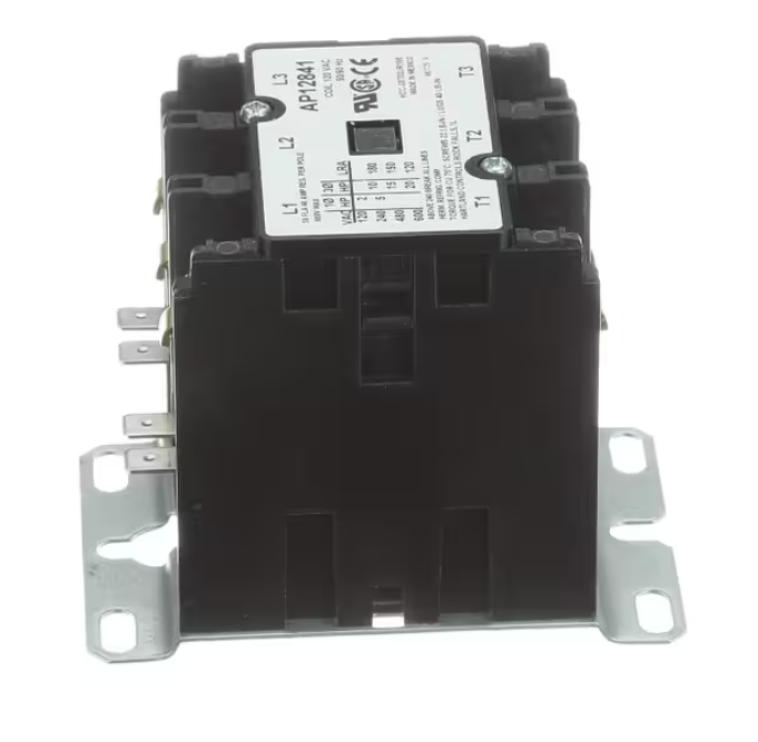 The Rheem HCC-3XT02JR195 / AP12841 Contactor is a heavy-duty 3 Pole 40 Amp electrical contactor designed for reliable power switching in HVAC and heating applications. Equipped with a 120 Volt 50/60HZ coil, this contactor ensures precise electrical engagement and stable system performance under demanding conditions. Built for durability and consistent operation, it serves as a direct replacement component to maintain proper equipment functionality and reduce downtime.