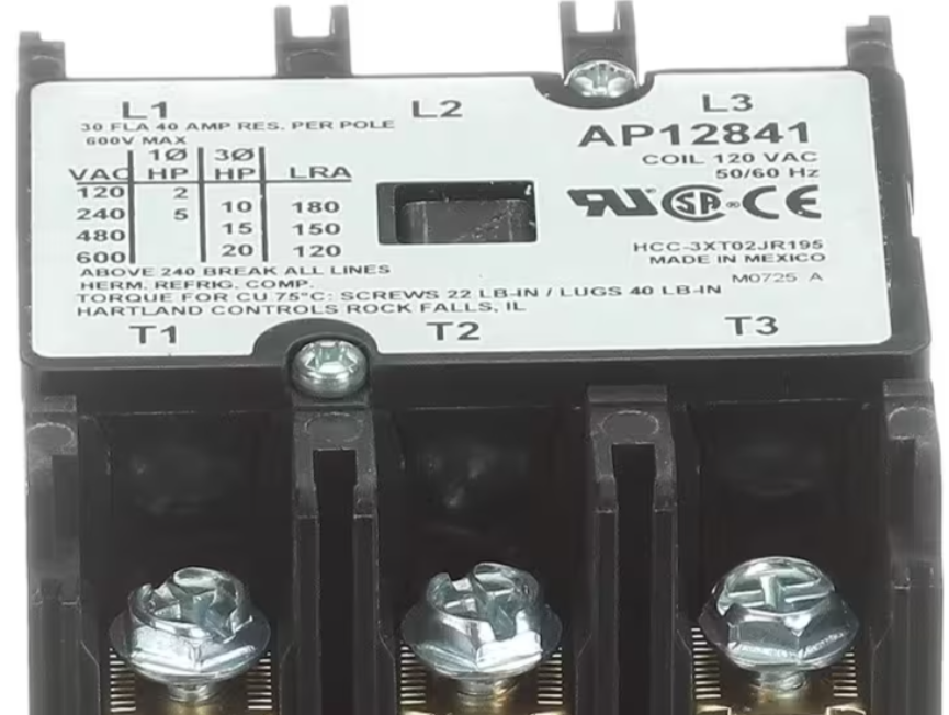 Rheem HCC-3XT02JR195, AP12841, Contactor, 120 Volt Coil, 50/60HZ, 40 Amp, 3 Pole