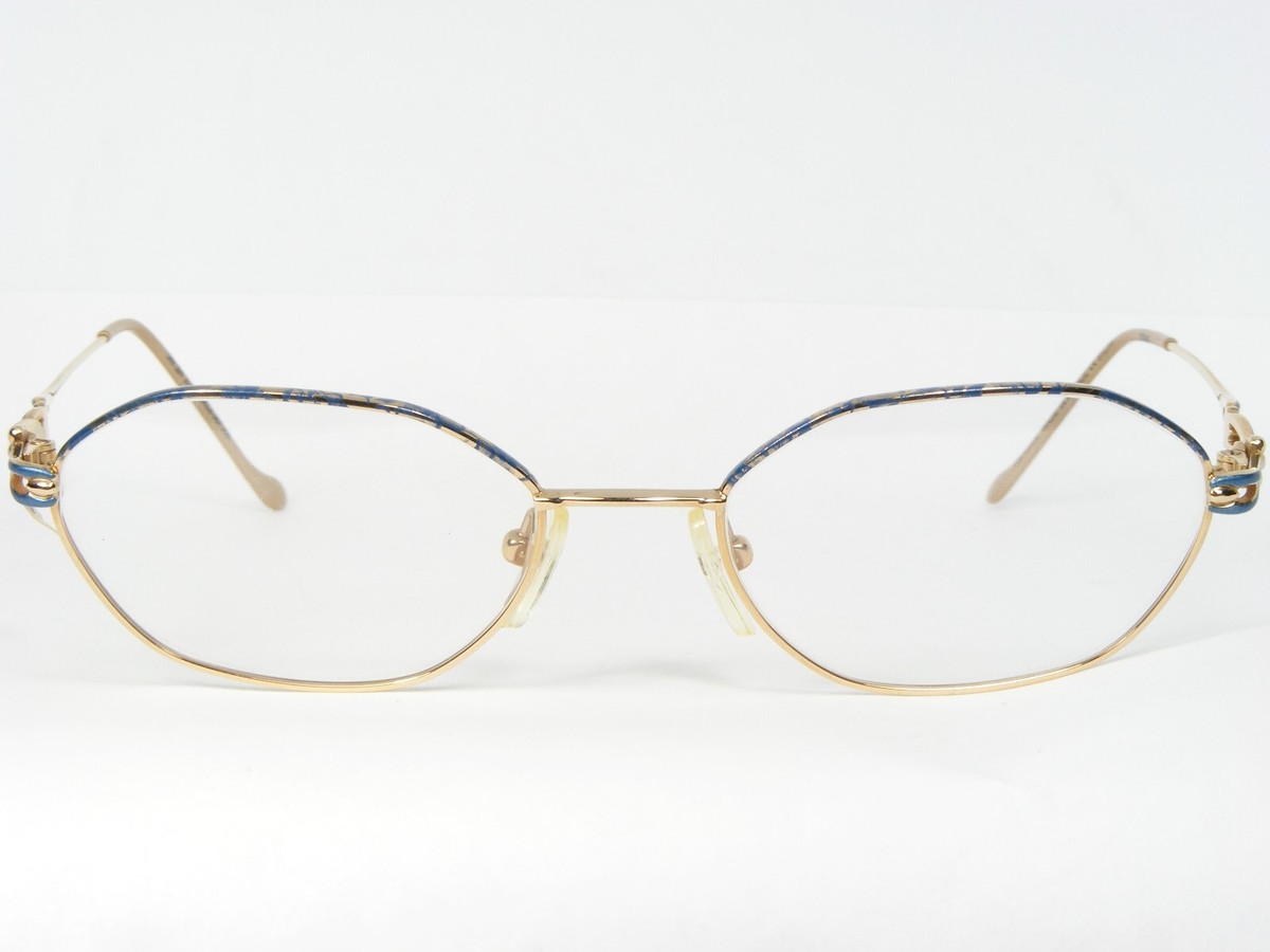 Vintage ELCE DIV.324 3129 BLUE / GOLD UNIQUE EYEGLASSES GLASSES 51-18-135 FRANCE