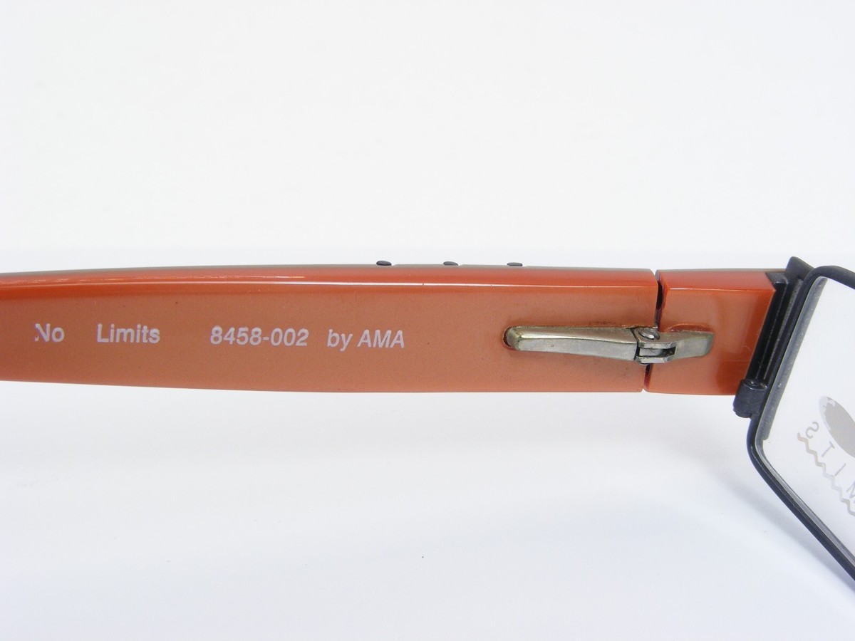 No Limits by AMA 8458 002 MATT BLACK /BROWN /ORANGE UNIQUE EYEGLASSES FRAME 52-16-140mm. (N165) Actual photos of these glasses. This is exactly what you will receive. Notes: no scratches /there are reflections on the frame from photo lamps Style and comfort in everyday use. A pair of glasses is not just an accessory; it provides the first hint of an individual?s personality. The wearer must enjoy a frame and feel that it is completely consistent with his or her look and mindset. A great pair of glasses, with all its detail and complexity must above all be an extension of the individual. Returns are always FREE for any reason. If you don't like it, simply click "Item no longer needed". Item should be returned within 60 days as UNUSED in original packaging. If you have any questions pleas