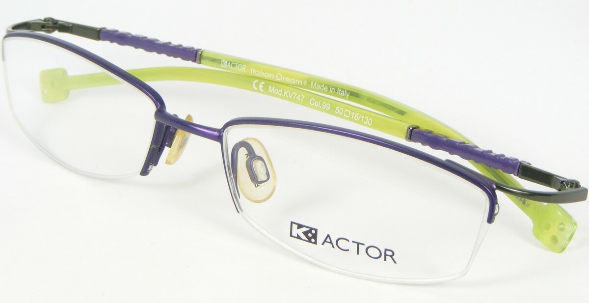 K-ACTOR Mod. KV747 Col. 99 PURPLE /GREEN UNIQUE RARE EYEGLASSES GLASSES FRAME 50-16-130mm. (F222) No scratches on the frame / there are reflections from the photo lamps. ACTOR - THE ESSENTIAL DESIGN. A brand coming from cold and bright light. Definite, squared, minimal shapes, cold and metallic colors for a collection which is young, functional and essential. Style and comfort in everyday use. A pair of glasses is not just an accessory; it provides the first hint of an individual?s personality. The wearer must enjoy a frame and feel that it is completely consistent with his or her look and mindset. A great pair of glasses, with all its detail and complexity must above all be an extension of the individual. Returns are always FREE for any reason. If you don't like it, simply click "Item