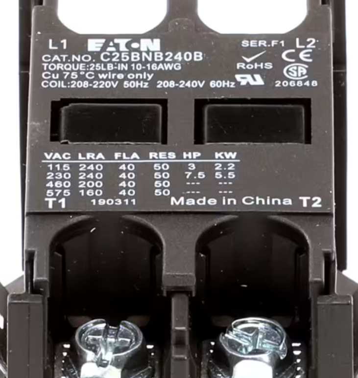Besco C25BNB240B, Contactor, 208/240V, 2 Pole, 40 Amp