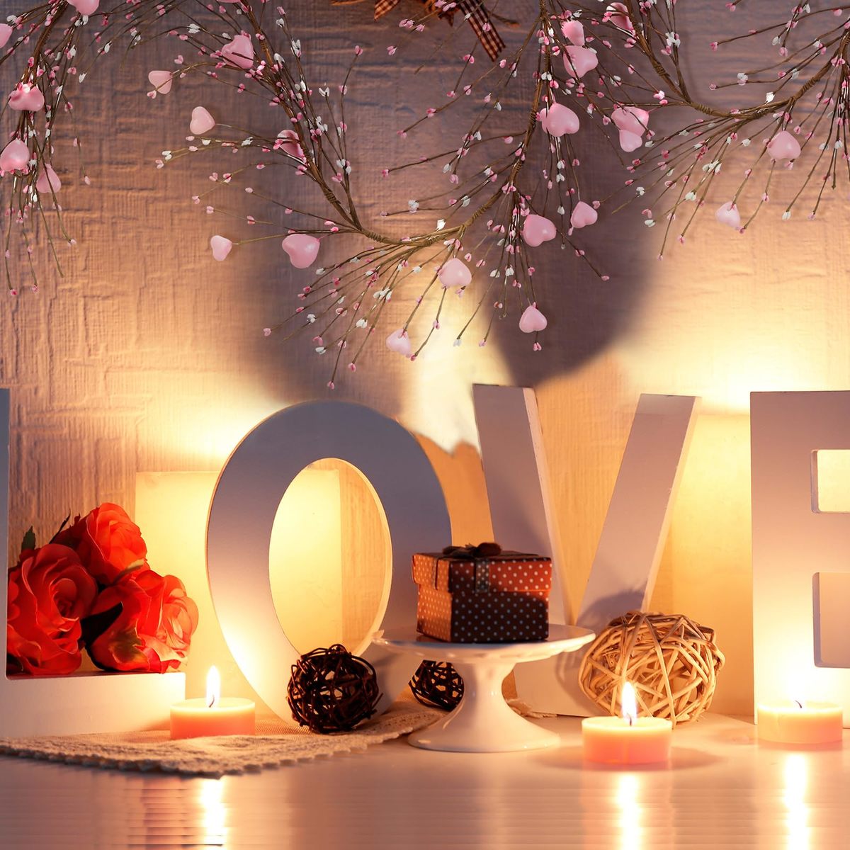 Package Content: each package includes 1 Valentine's Day garland along with 1 string of fairy lights; These easily combined elements eliminate the need to purchase additional accessories, providing everything you need to create a captivating lighting display right out of the box,Suitable Length: with the Valentine's Day garland measuring approximately 54 inches/ 137 cm and fairy lights spanning about 10ft/ 3 meters, it is of considerable length to traces door frames, line tables, or dress up the mantel; It's the suitable size to adorn and create an enchanting setting; Note: you need to bring your own battery,Valentine's Day Decoration: create a delightful atmosphere with our Valentine's Day garland; Paired with the twinkling LED lights, this garland creates the nice tone for a romantic evening; Transform your ordinary space into a love filled atmosphere, showing your affection and love,Romantic Outlook: plunge into the atmosphere of love with our Valentine's Day garland with LED lights; The heart designs intertwined with the lush garland capture the essence of romance and love, making it an ideal decor for a Valentine's Day celebration,Wide Use: this garland isn't just for Valentine's Day; Its bendable feature allows you to shape it to fit decorating needs; Create striking centerpieces for weddings, parties, or everyday home decor; It's versatile and suitable for indoor or outdoor setting throughout the year