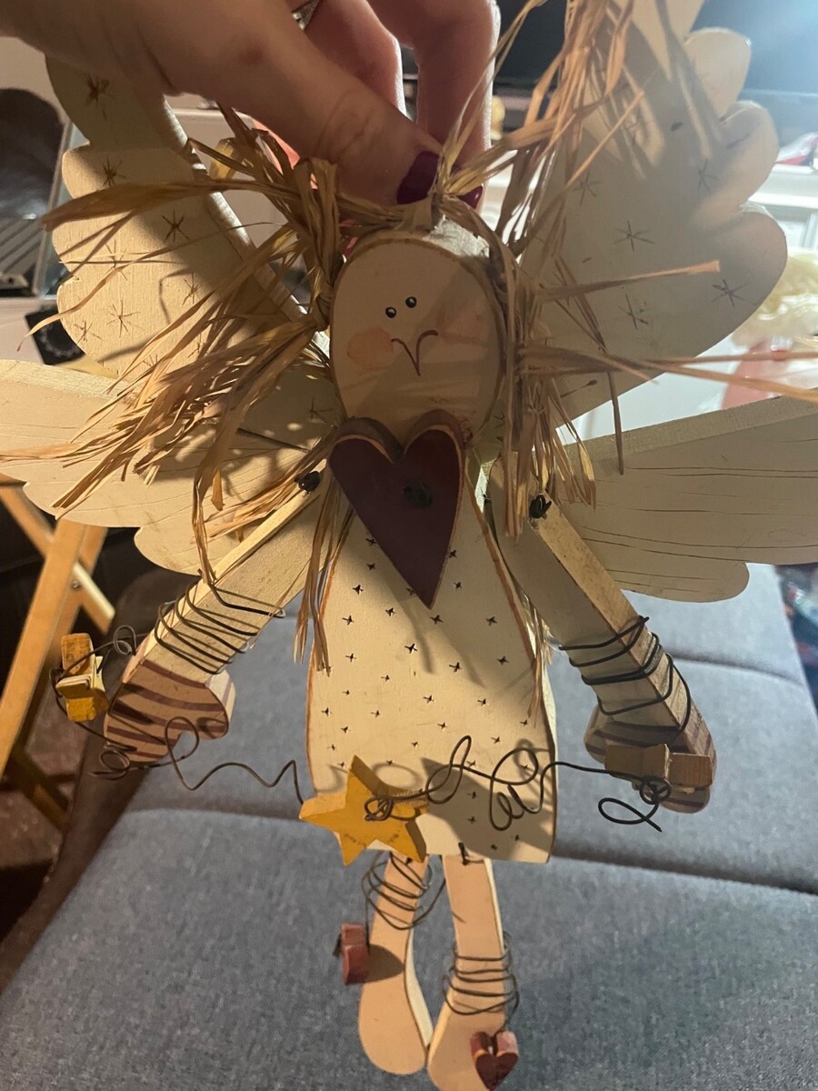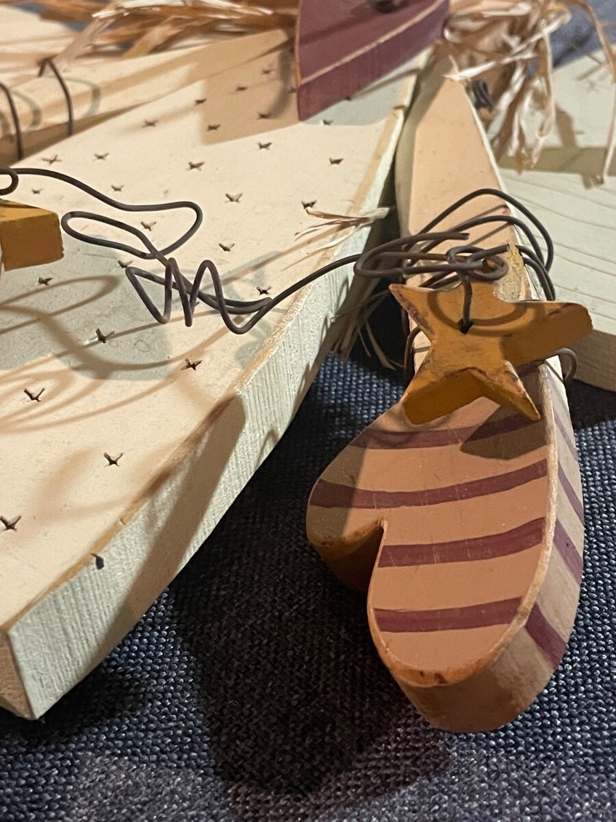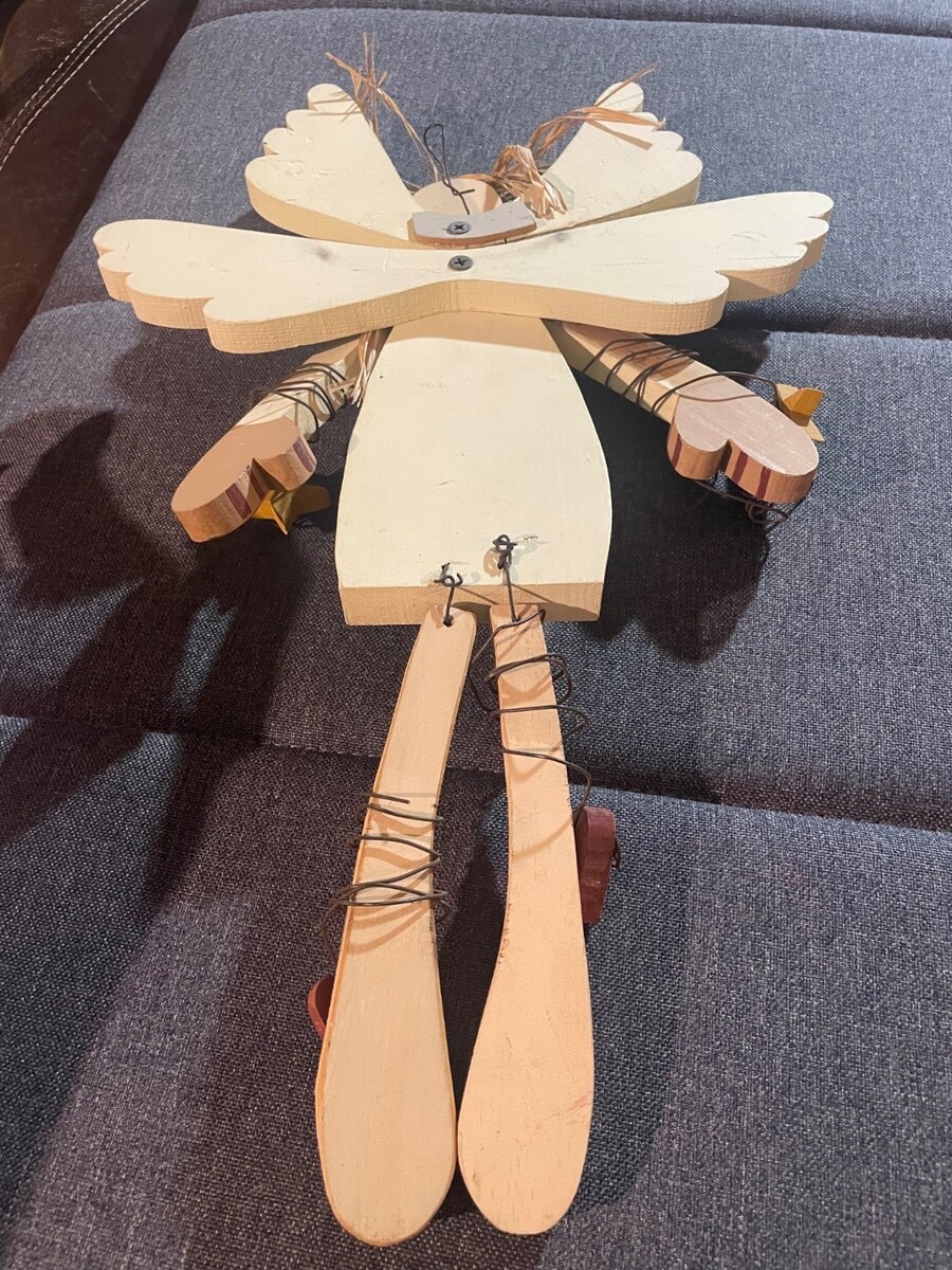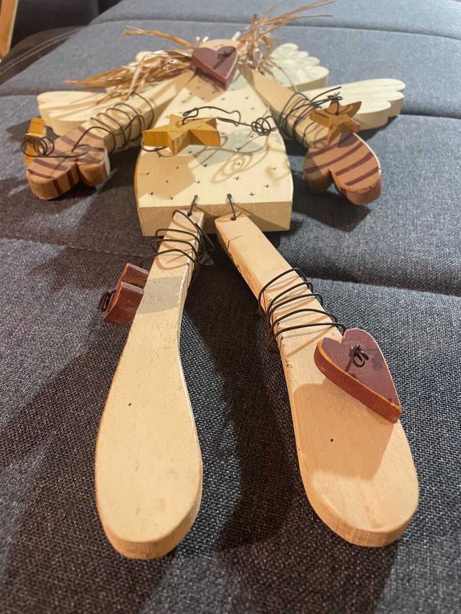 Primitive Wooden Angel Wall Decor Rustic Farmhouse Folk Art Hanging