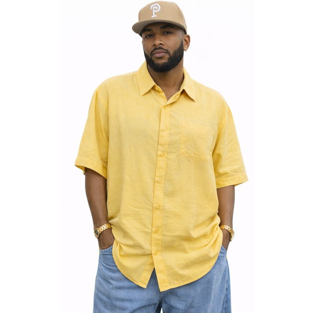 VTG Pelle Pelle Yellow Linen Logo Shirt Hip Hop Streetwear Y2K XL