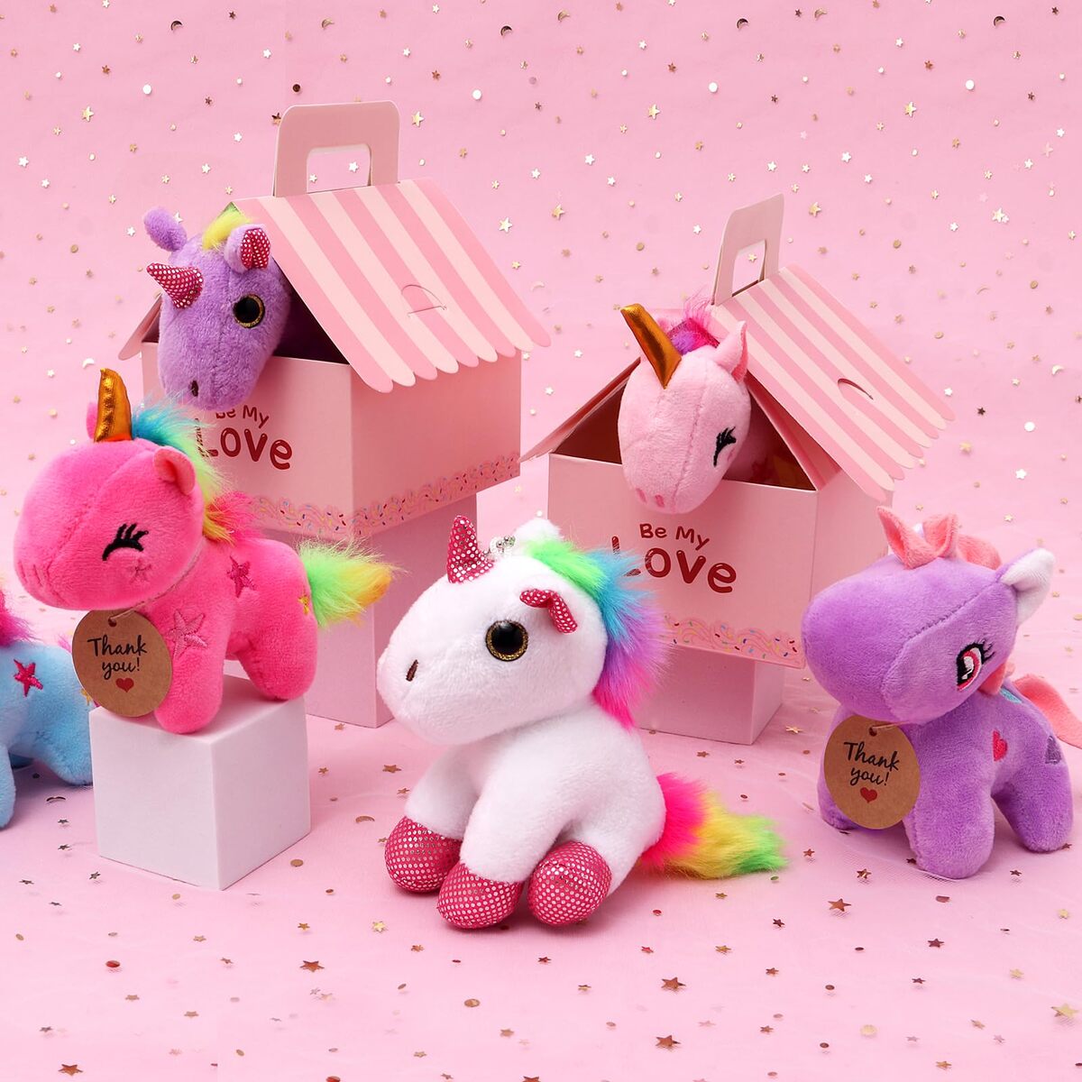 Ultimate Unicorn Set - Dive into our ultimate unicorn party favors package! This unicorn plush set includes: 12 mini unicorns each with a unique style, 12 enchanting unicorn homes, and 12 thank you cards, all beautifully boxed up for you.,Adorable Unicorn Stuffed Animals for Girls - These cuddly mini stuffed animals bulk toys are not just any plush ? they are unicorn stuffed animals for girls, made from a premium, velvety fabric. Soft to the touch with dreamy colors, it feels like you're caressing a cloud. Their sweet smiles radiate a sense of carefreeness.,Convenient Plush Keychain - Each unicorn plush toy comes with its keychain, perfect for accessorizing backpacks, handbags, cars, or wherever your heart desires. Let the magic and good fortune accompany kids wherever they go.,Elegant Packaging - Every mini unicorn plush toy is housed in a beautifully crafted, sturdy box to retain its perfect shape and prevent any distortions. Each of these adorable mini unicorns has its own special home.,The Perfect Gift - Our unicorn plush set is versatile for all occasions: from unicorn birthday gifts to Christmas gifts, classroom rewards, children?s party favors, treasure box toys for students, carnival prizes, and more. Children can also share this delightful gift with their friends, forging a bond of friendship. It's a gift that will be a cherished memory in their childhood journey. Recommended for 3-12 years old girls