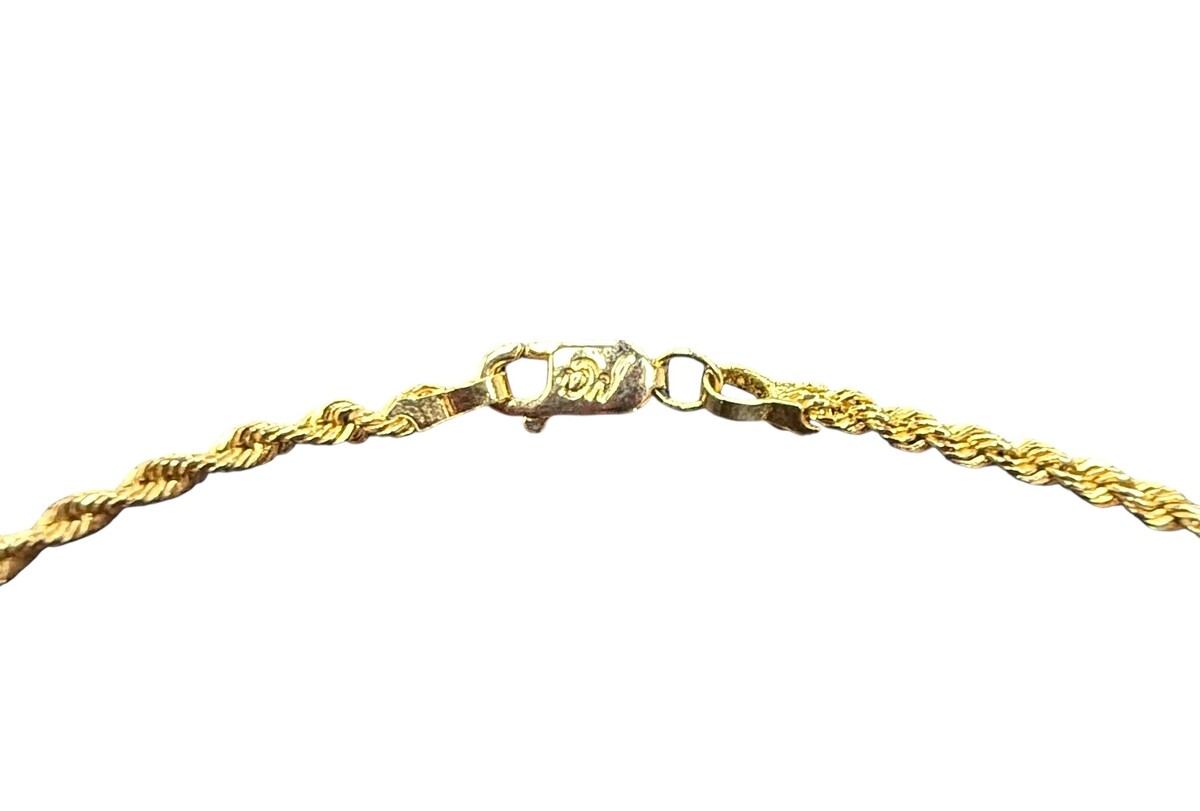 Type: ChainWeight: 3.2Karat: 14ktMetal: Yellow GoldGender: UnisexStyle: RopeSize / Length: 18"Owner applied: 14k M@Condition:Used