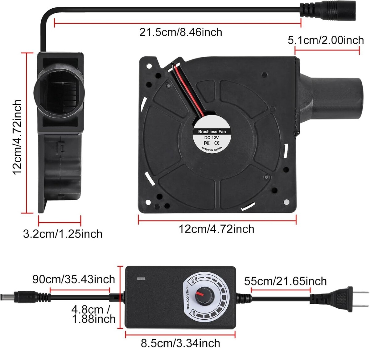 120Mm X 32Mm Electric BBQ Blower Fan 12V with 110V - 240V AC Variable Speed Cont