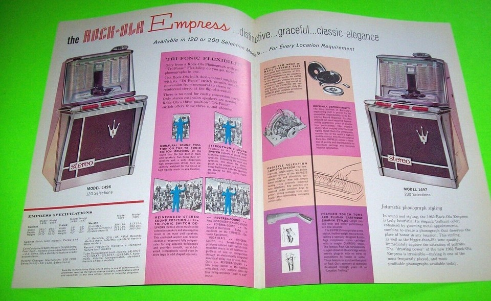 RockOla Empress 1496 1497 Jukebox FLYER 1962 and similar items
