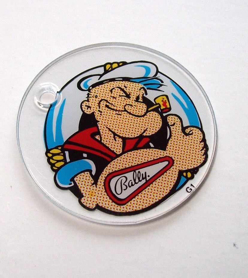 Popeye Keychain 1993 NOS Original Pinball Machine Plastic Promo G1 Logo