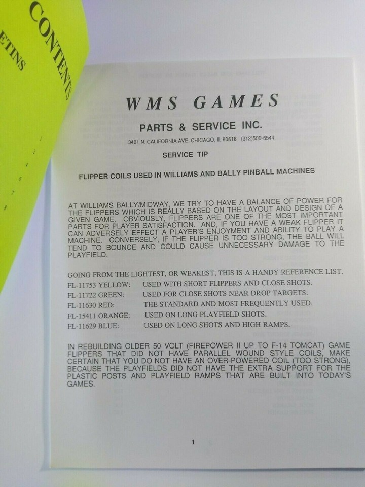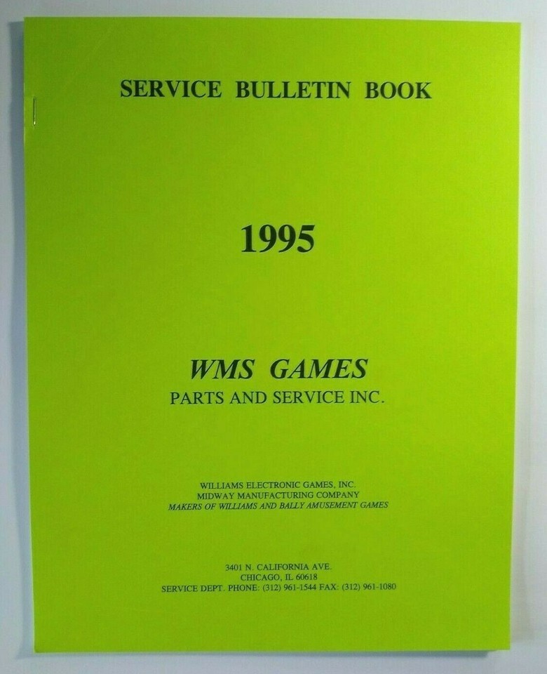 Williams Pinball Service Bulletin Book 1995 Original Flipper Game Repair Info