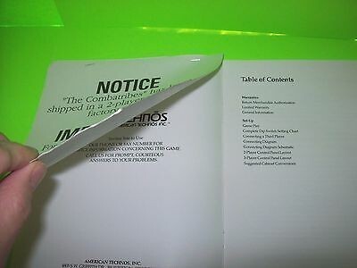 Technos The Combatribes Original 1990 Video Arcade Game Manual