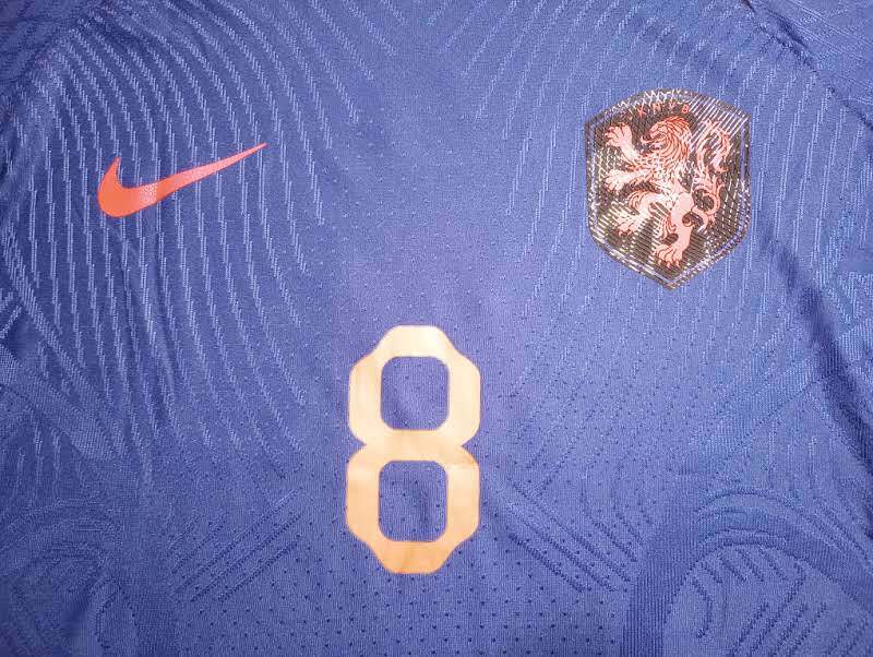 Cody Gakpo Netherlands 2022 World Cup Qatar Match Slim Blue Away Soccer Jersey