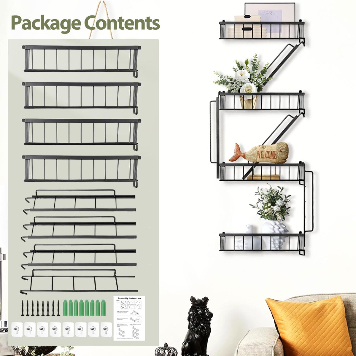 Upgrade Design Wide Application -- The 4-tier fire escape decor shelves, made of sturdy carbon steel, feature thickened edge and perforated plate for added durability and stability for long-lasting use. suitable for living room, drawing room, bedroom, bathroom and kitchen.,Increased Heavy Weight Capacity For Safe Storage -- Come with four separate shelves, Every single shelf measures 11.8?L x 4.14?W x 2.52?H, can steadily support goods weighing up to 9.1 lbs per rack without tipping, provide ample support for various items, like small pot planters, books, photos, record album, trophy, collections, action figures, and other decors.,Space-Saving Aesthetics -- The NYC style floating shelf set offers a unique and innovative storage solution that combines functionality with an eye-catching design. Attractive addition to the wall, offering a stylish and creative way to display decor items and personalize home or office space.,Multi-functional Multiple Creativity -- The aesthetic urban floating shelf can be combined in many ways. It can be spice racks to increase kitchen storage, be knick knack shelf to display collections in the room, and be wall shelves to create an organized space. Keep your space organized and clutter-free.,Easy to Install Great Gift Choice -- Easy and quick installation with the included 4*shelves (without decor), 4*ladders, instruction, screws, and extra 8* self-adhesive screws,enabling you to set up the versatile floating shelf effortlessly, only need a few minutes. The wall-mounted cool house decorations shelf is also a wonderful christmas gift for yourself or your loved ones. It's a memorable option for anyone who values innovative design, whether it's for birthdays, housewarmings, or special occasions.