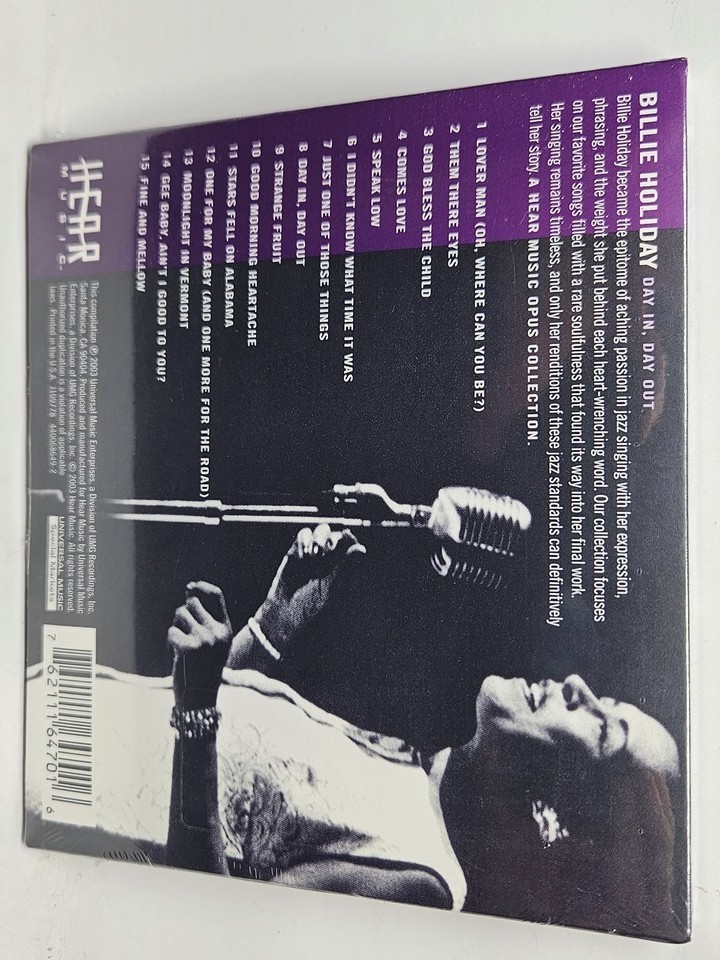 Immerse yourself in the timeless artistry of Billie Holiday with "Day In, Day Out," a captivating CD collection from 2003. This Bear Music Opus Collection features 15 iconic tracks, showcasing Lady Day's unparalleled vocal expression, masterful phrasing, and the profound emotional depth that defined her work. Each song is a testament to her enduring legacy as one of the most influential voices in jazz and soul music history, making this a must-have for any discerning music enthusiast or collector.