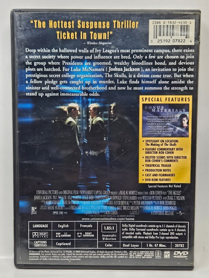 The Skulls DVD 2000 Collector's Edition Joshua Jackson Rob Cohen Thriller