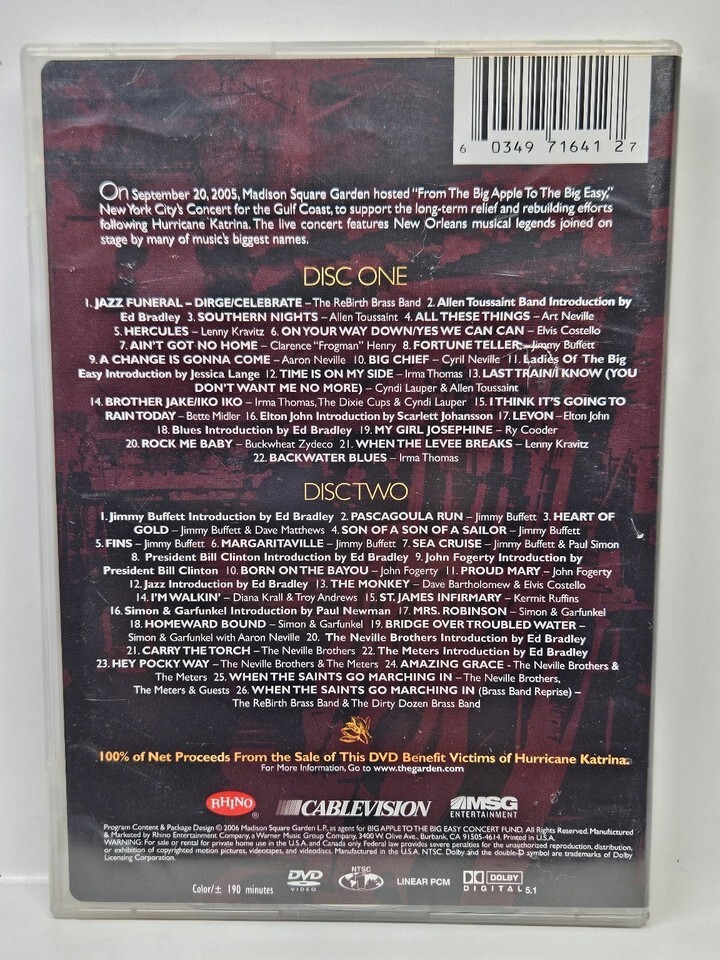 Big Apple Big Easy Concert For New Orleans 2006 DVD Buffett Costello Elton John