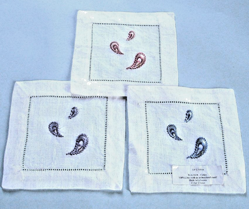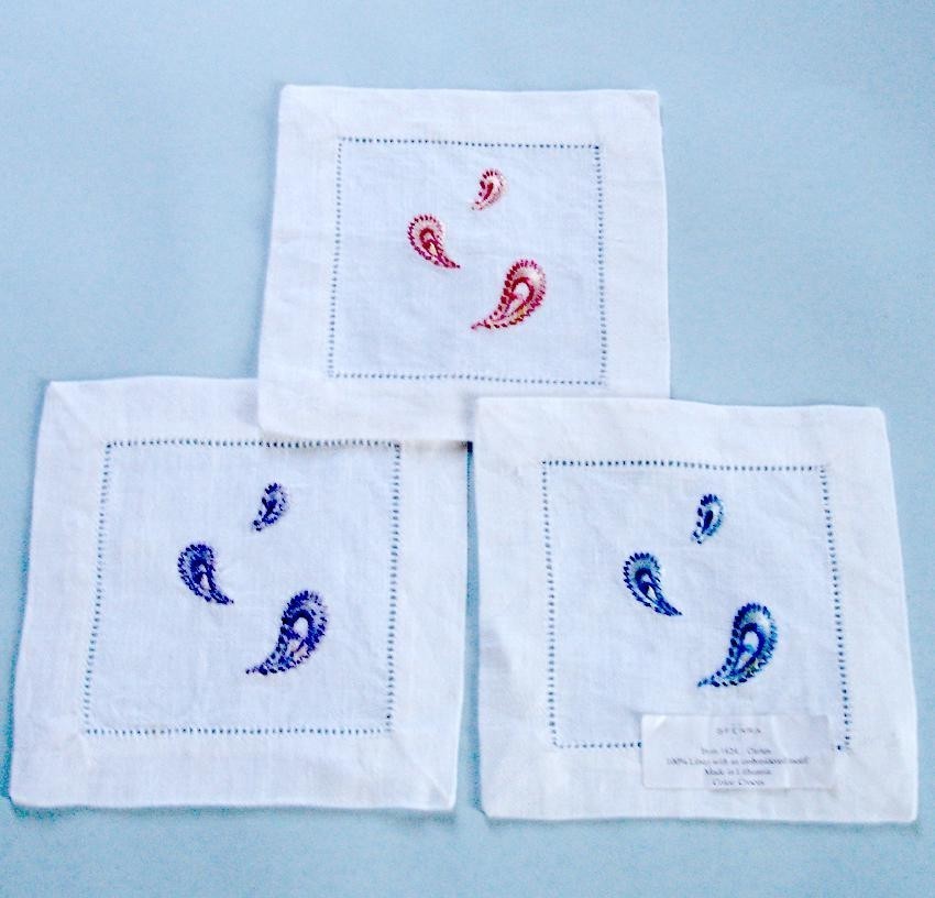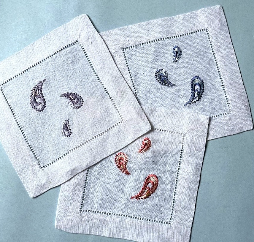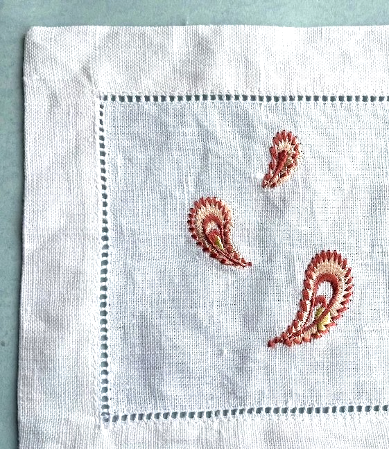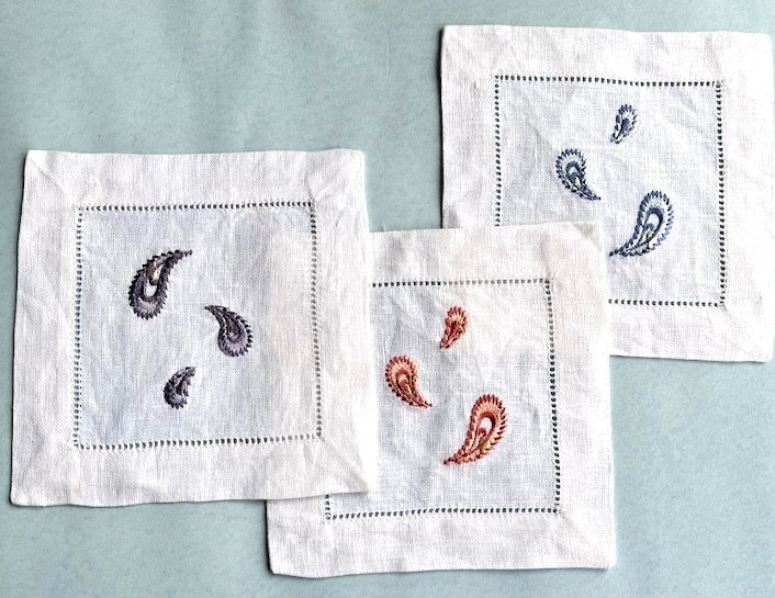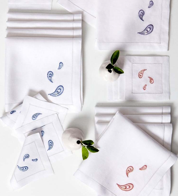 napkins adorned with satin-stitched paisley