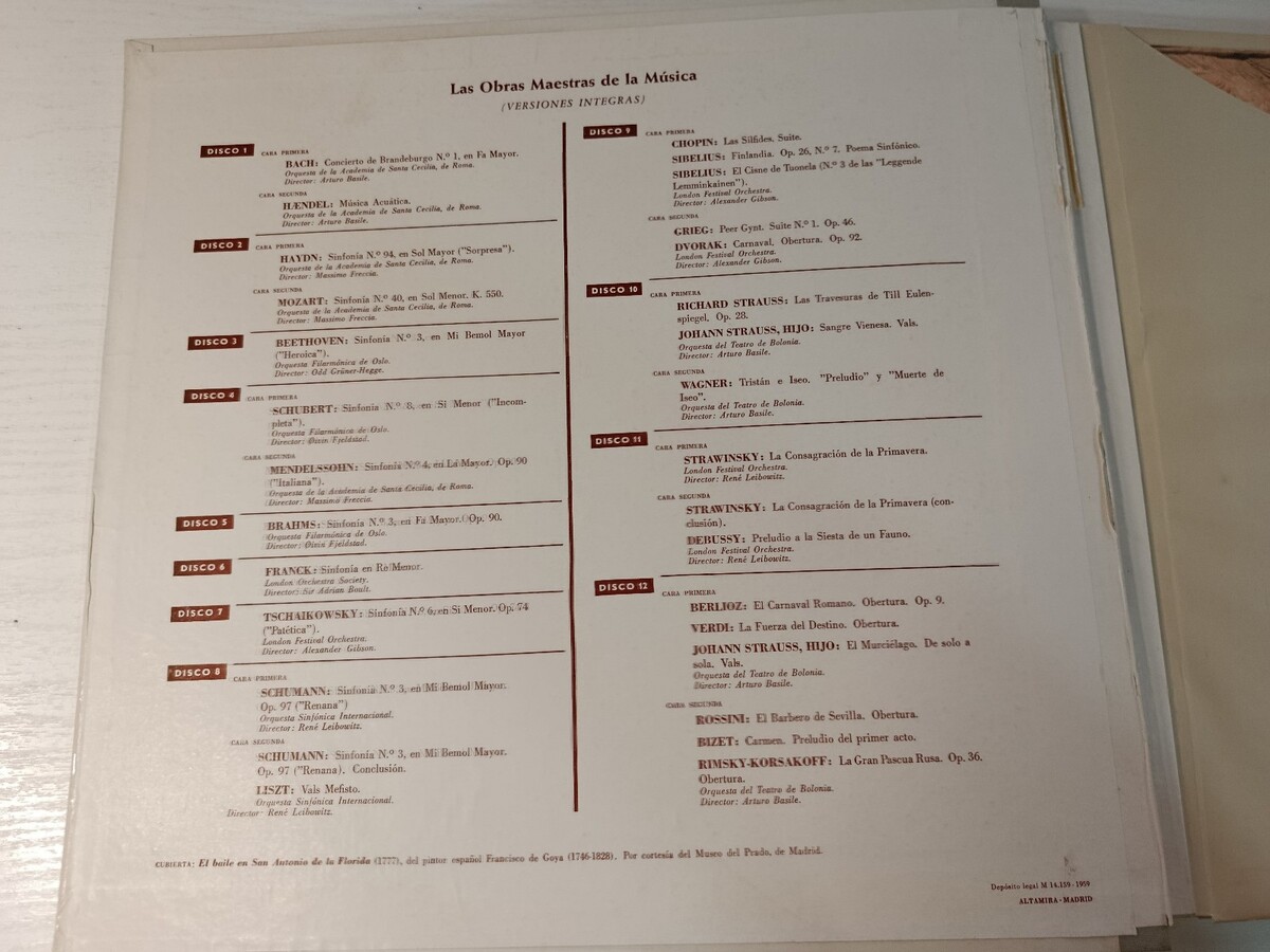 I Capolavori de Musica 1959 - Box 12 x LP + Libretto 12" Vinilo VG/VG