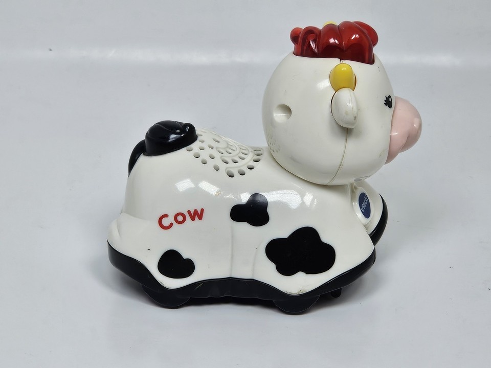 This VTech Go! Go! Smart Animals Cow is a delightful interactive toy for toddlers. It features a light-up button that triggers fun music, sounds, and phrases. The cow is designed to work with Go! Go! Smart Wheels and Animals track sets (sold separately), responding to SmartPoint locations with different phrases and sound effects. It is perfectly sized for small hands and helps develop motor skills while encouraging imaginative play. The toy is battery operated and has been tested for basic functionality. Please see photos for physical condition.