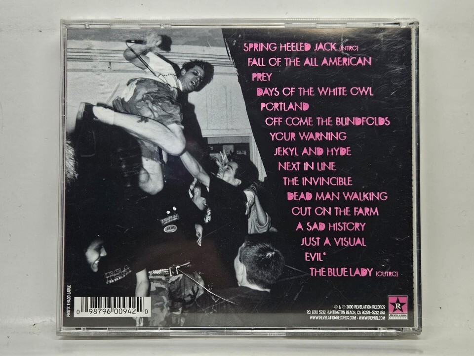 "Days of the White Owl" includes fan favorites like the title track, "Portland," "Fall of the All American," and "Jekyll and Hyde," making it an essential addition for collectors and enthusiasts of hardcore punk. The album is a testament to the band's impactful contribution to the genre, recorded with the authenticity that Revelation Records is known for. Experience the aggressive vocals, driving guitars, and pounding rhythms that make this album a standout.