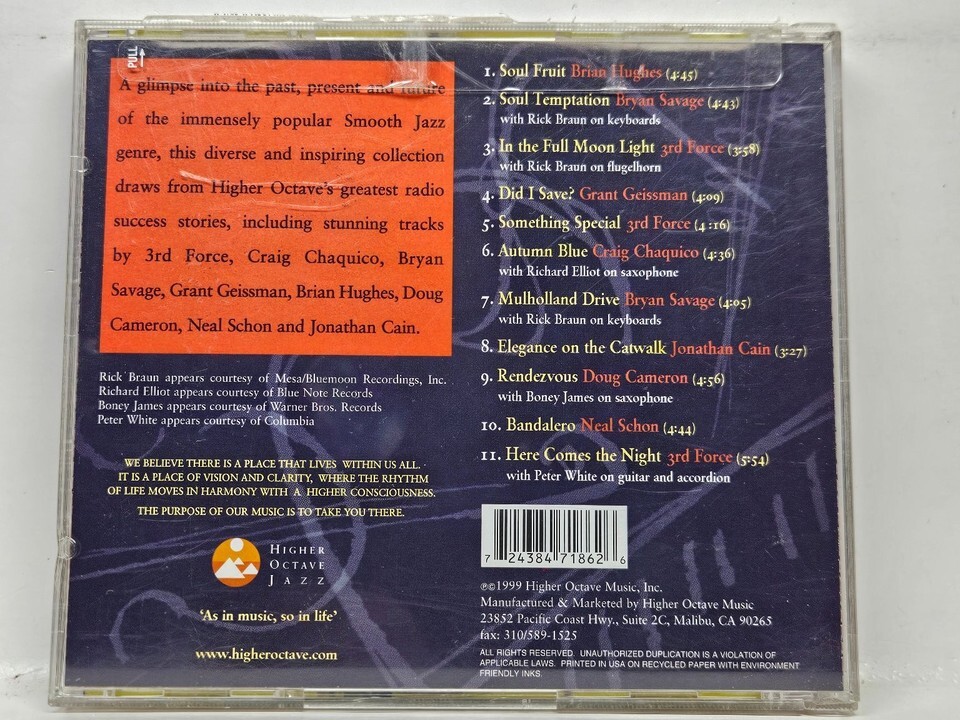 This release is a treasure trove for smooth jazz enthusiasts, featuring notable appearances by Rick Braun, Boney James, and Peter White. From the rhythmic pulses of 'Soul Fruit' by Brian Hughes to the evocative 'Autumn Blue' by Craig Chaquico, each track has been selected to represent the label's greatest radio success stories. Whether you are a dedicated collector of the Higher Octave catalog or a newcomer to the smooth jazz scene, this disc offers a glimpse into the past, present, and future of an immensely popular genre.