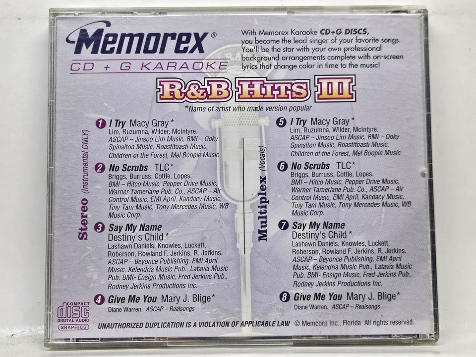 Memorex R&B Hits III CD+G Karaoke CD 2000 Multiplex Graphics R&B Soul Memcorp