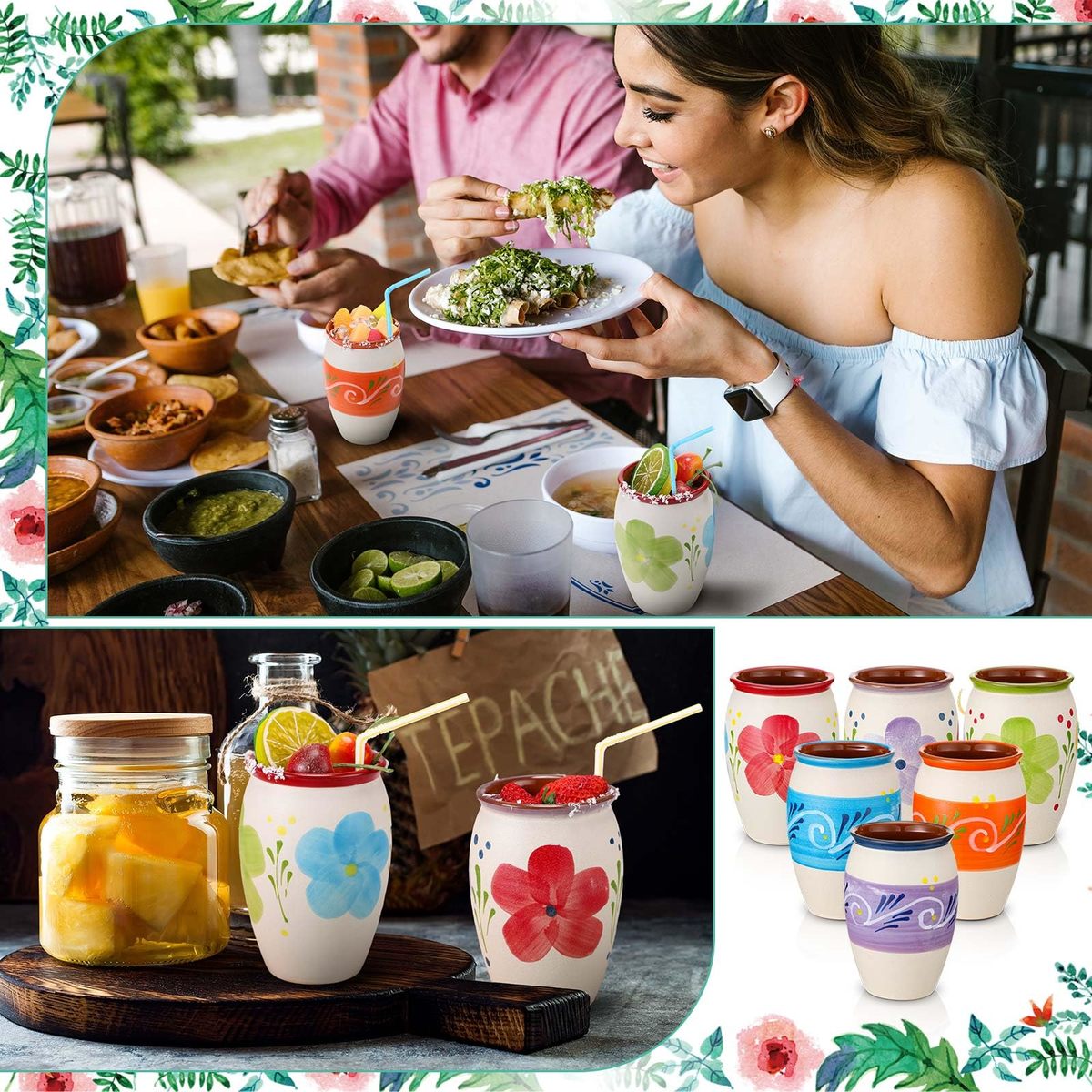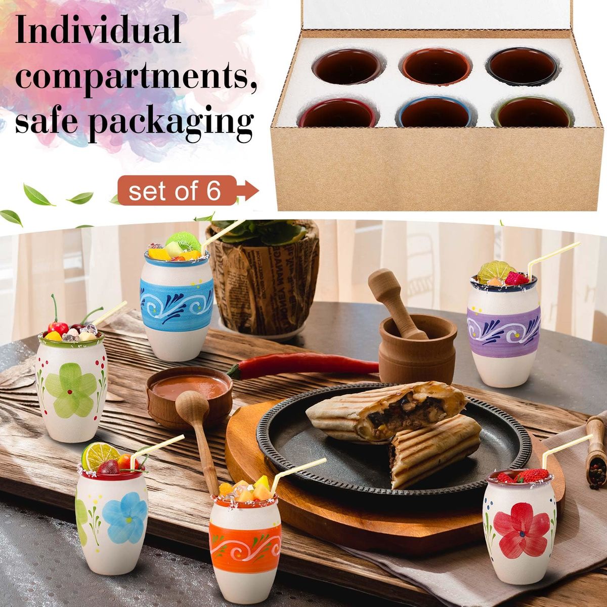 Gejoy 6pk 12oz Cantaritos de Barro Mexican Clay Cups Pottery Fiesta