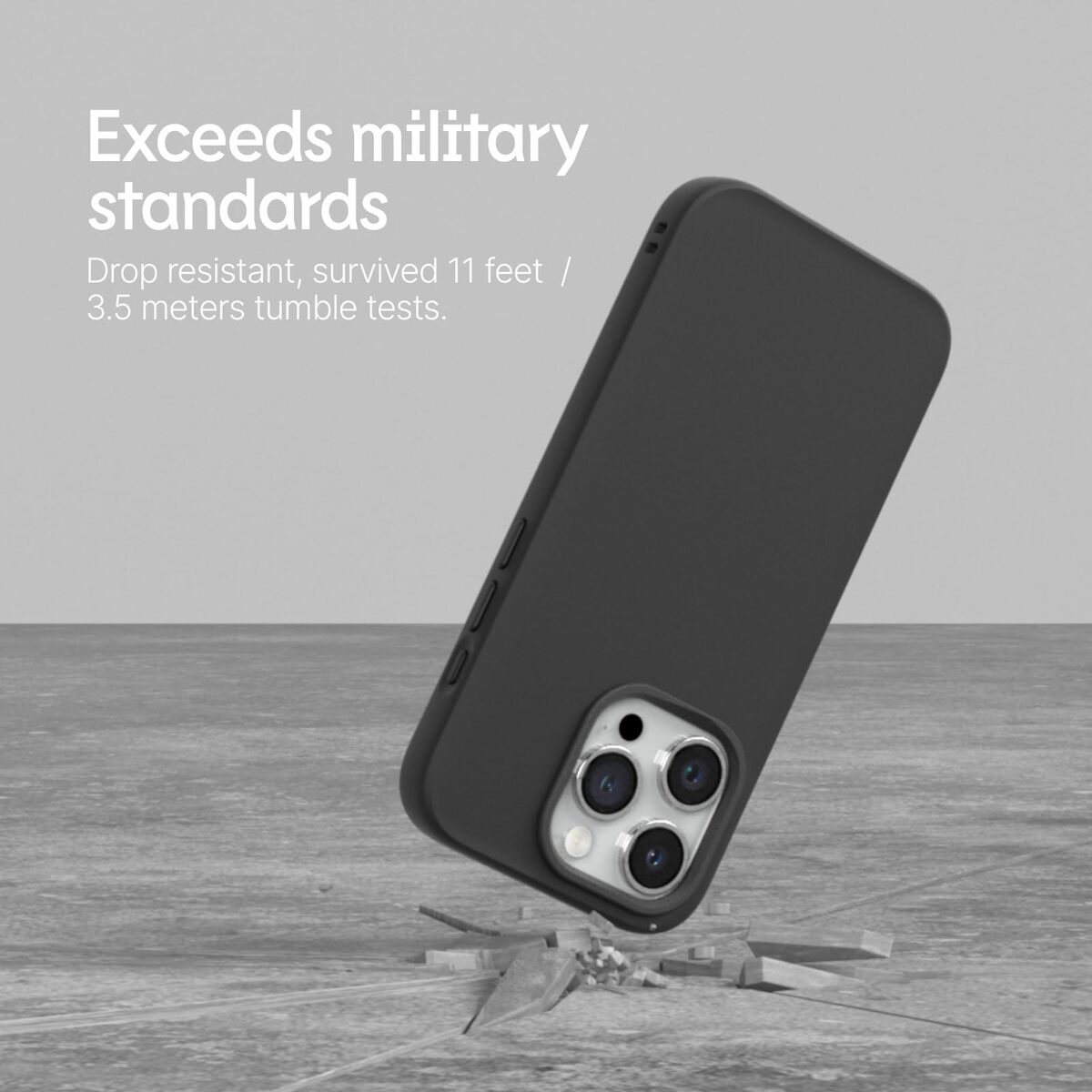 COMPATIBILITY : Only compatible with iPhone 14 Pro. It is recommended to pair this case with the RHINOSHIELD Screen Protector for a more comprehensive, all-around protection against face-down falls on pointed objects or highly-uneven surfaces.,UNPARALLELED SHOCK PROTECTION : Surpasses military grade standards, providing impact protection of up to 11 feet / 3.5m, while being 20% thinner than other cases that offer a similar level of protection.,DURABLE MATERIAL : Tough yet flexible, holds shape without loosening even after repeated bending or stretching. This bumper is scratch resistant, 100% recyclable, and 100% BPA Free, making it completely safe for you and your loved ones.,MINIMAL DESIGN : SolidSuit's slim design follows the phone?s contours closely for a snug fit, and has a premium matte finish that provides good grip without causing signal interference.,USER FRIENDLY : Designed with highly precise cutouts for easy access and control of all device buttons. Compatible with all official charging cables, MagSafe, and Qi wireless charging.