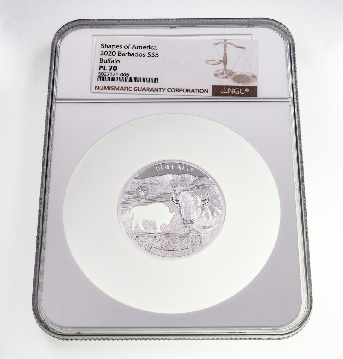 2020 Barbados Shapes of America 1 Oz. Silver Prooflike Buffalo Calut NGC PL70